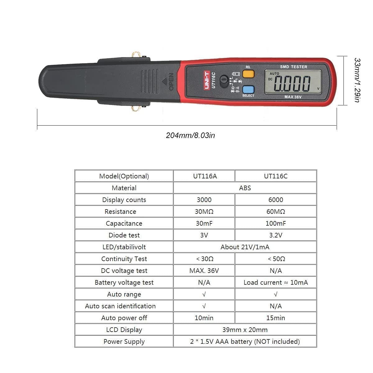 | Included Components | SMD Tester |
