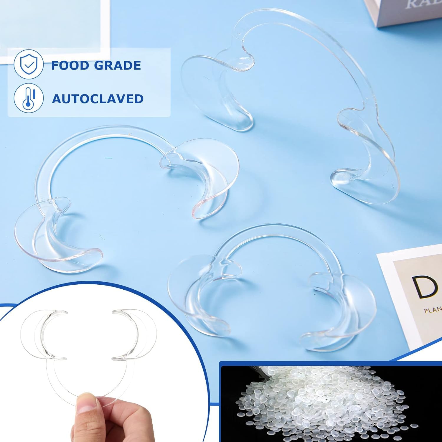 Features: The dental mouth opener is suitable for teeth whitening, dental care and more, safe and reliable. The mouth opener is also ideal for various kinds of parties, like birthday, Halloween, Christmas, wedding, bridal shower and more, bring endless joy and laughter. Specifications: Material: quality plastic Color: clear Size: small, medium, large Package includes: 60 x Dental cheek retractor 3 x Teeth shade guide Notes: Manual measurement, please allow slight errors on size. The color may exist a slight difference due to different screen displays.
