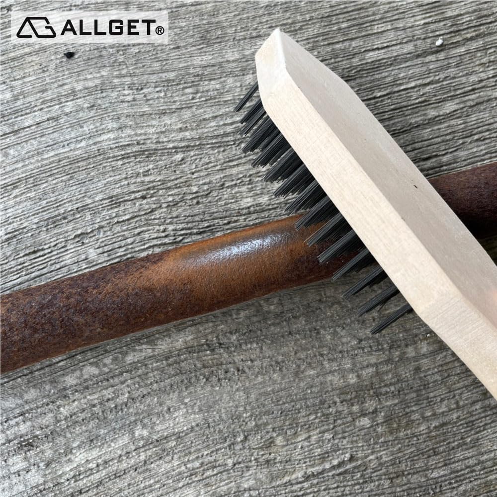 ALLGET High-Hardness Steel Wire Brush Made with high-carbon content, high-hardness steel wire, this brush provides stronger force and higher scraping efficiency compared to regular steel wire brushes. The handle is crafted from high-quality hardwood, ensuring durability and resistance to cracking and shedding. Suitable for various applications such as cleaning, rust removal, weld slag removal, paint scraping, wallpaper removal, moss scraping, etc. With three different styles available, catering to various use cases, making it easy and convenient to use Note: Please wear protective gloves when using to avoid being pricked by the bristles.