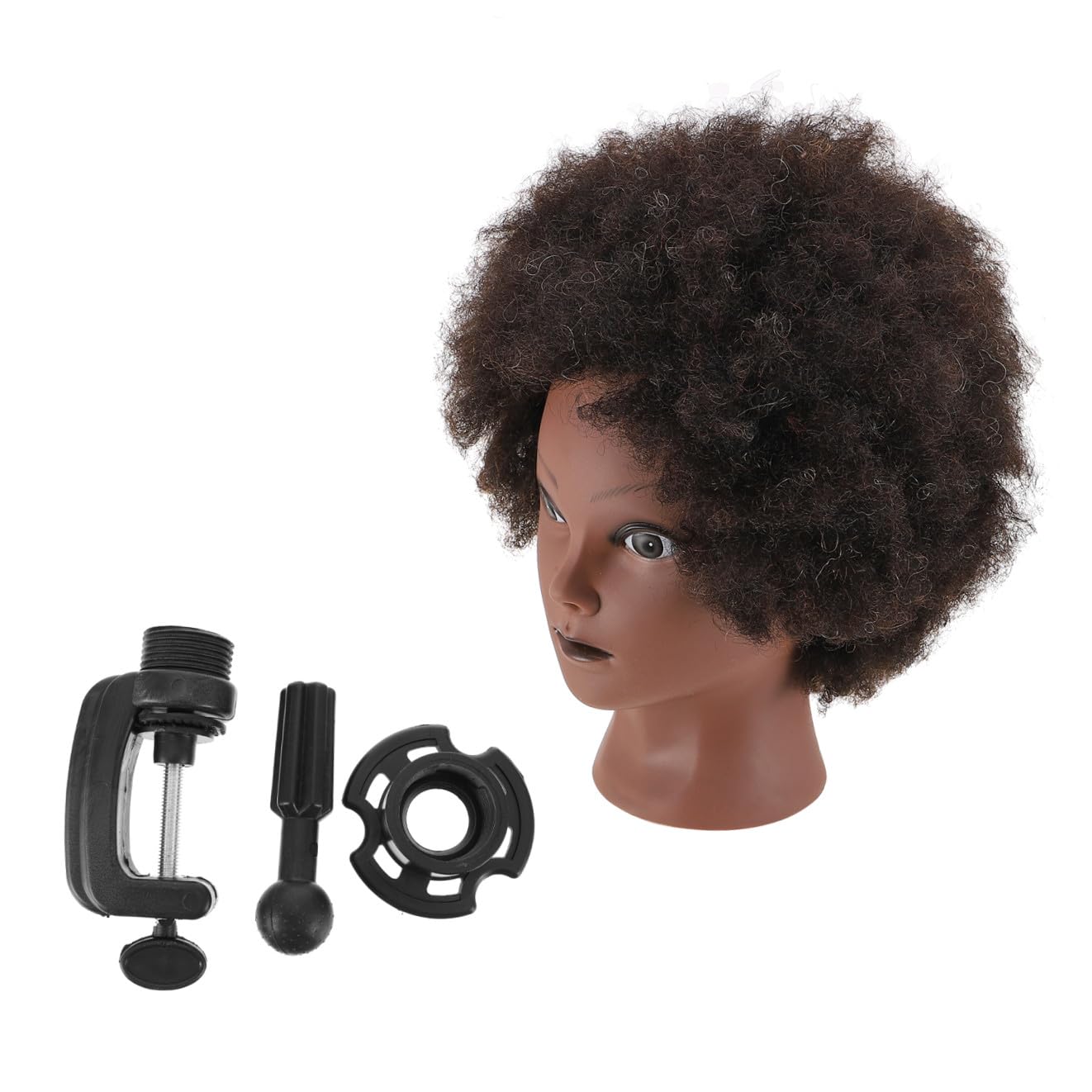Package List 1 x head mould Features - Color: black Mannequin Head. - Material: hair and plastic African Head. - Size: 27.00X17.00X15.00cm/10.61X6.68X5.89in Hairdressing Practice Tool. - Made of , super thick hair, making you feel soft Styling Head Doll. - Not easy to knot, it is suitable for barber, hair salon, hairdressing academy Cosmetology Head. - real human hair, medium-sized training head you can practice hairstyling Hair Hairdressing Equipment. - When you to have hairstyles training, this mannequin can your imagination and hands-on ability Head Mould. - The hair is implanted firmly on the braiding mannequin head to ensure there is nearly no losing hair Head.Goods InformationMannequin Head With this beautiful training head, you can braid hair, cut hair, make any styling hair, and so on, it is very interesting.Head Mould The hair is nice, stylish and vivid, very easy to do any hairstyle with it. Head Made of material, it has a