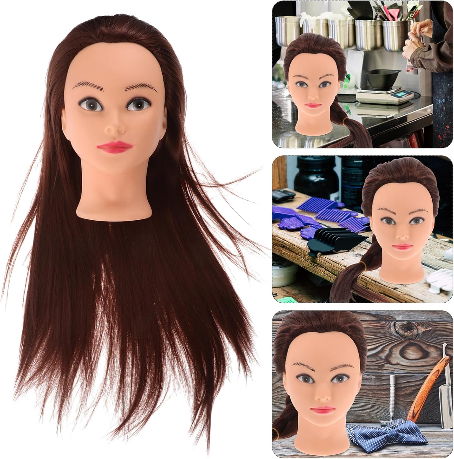 Package List 1 x Mannequin Wig Head Characteristics -Multipurpose: ideal for use in hairdressing, beauty parlors, and cosmetology training centers mannequin head human hair -Simulation hair: crafted with fiber that offers a lifelike texture and high level of realism make up mannequin head -Material:High temperature fiber, silicone human hair mannequin head with stand -Practice head: user-friendly, ideal for practice and displaying various hairdressing styles mannequin heads - Color: Brown mannequin head for hair styling -Ideal for updos and braids: designed for hairdressing students and professionals to DIY their updo and braiding skills mannequin head for makeup practice - Size: 40.00X20.00X15.00cm/15.72X7.86X5.89in mannequin head for braiding -Curling friendly: the hair can be curled with heat tools, enabling the creation of diverse hairstyles head mannequin with hairGoods Descriptionhuman hair mannequin head with stand Its wig allows for versatile styling options, ensuring that users can practice.hair mannequin head practice kit The mannequin head boasts a lifelike appearance with long wig, making it ideal for cosmetology students and hairdressers to show their skills