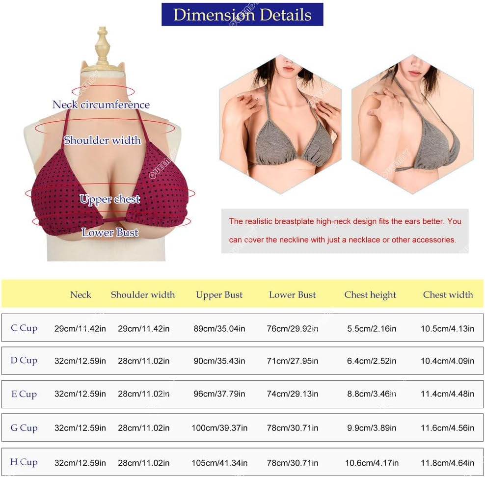~ A beautiful silicone Breastplate can add fun to your life! ~FeatureIf you are looking for a breast form with a realistic look, touch and feel . These forms will have the bouncy, jiggly movement just like real breasts. Washable and waterproof.The movement and weight of the breast form to your body gives these breast forms a natural look and feel.Product parameterSkin Material: SiliconeError range: 2cm-4cmStretching: Can be stretched to 150%Color: Color 1, Color 2, Color 3Filled: Cotton Filled, Silicone Filled✭Water-proof design, can be worn for swimming and bathing.How to Judge The Size Is Suitable for You?You can judge the size according to our detail information and pictures.(1)Your chest circumference(2)The cup size you want to achieve(3)Neck circumferenceHow to care the silicone breast?(1) Clean them in lukewarm water with mild soap, air-dry or with towel gently.(2) Keep away from hot temperature, sunshine, sharp pointy things, washing machine, chemical material.(3) To avoid discoloration of other clothes, do not clean the products with other clothes.(4) This product is easy dyeing. Therefore, do not wear faded clothes or jewelry. Artificial dyeing is not refundable.