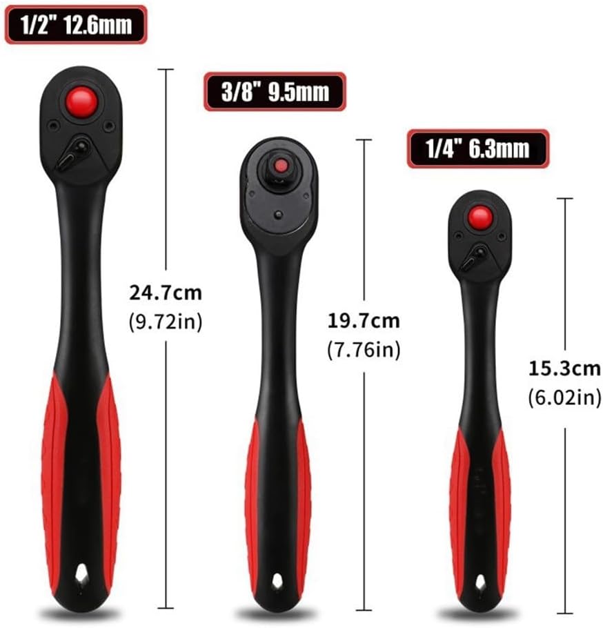 Product description Feature:.72-Tooth Quick-Release Ratchet:Features a 72-tooth quick-release mechanism for efficient tightening and loosening in for tight spaces.2.Ergonomic Comfort Grip:Ergonomic plastic handle with a pommel design ensures comfortable grip and reduces hand fatigue.3.Reversible Drive Direction:Equipped with a reversible thumb switch for quick direction adjustment from clockwise to anti-clockwise.4.Chromium-vanadium Steel Construction:Crafted from premium chromium-vanadium steel for superior strength and resistance.Specifications:*Product Name:72-tooth Ratchet wrench*Material:chrome vanadium steel*Size:/4 inch, 3/8 inch and /2 inch drive*Length:150/200/250mm*Color:blackPackage content:1pc*wrenchor3pcs wrench Manufacturer Contact Information no