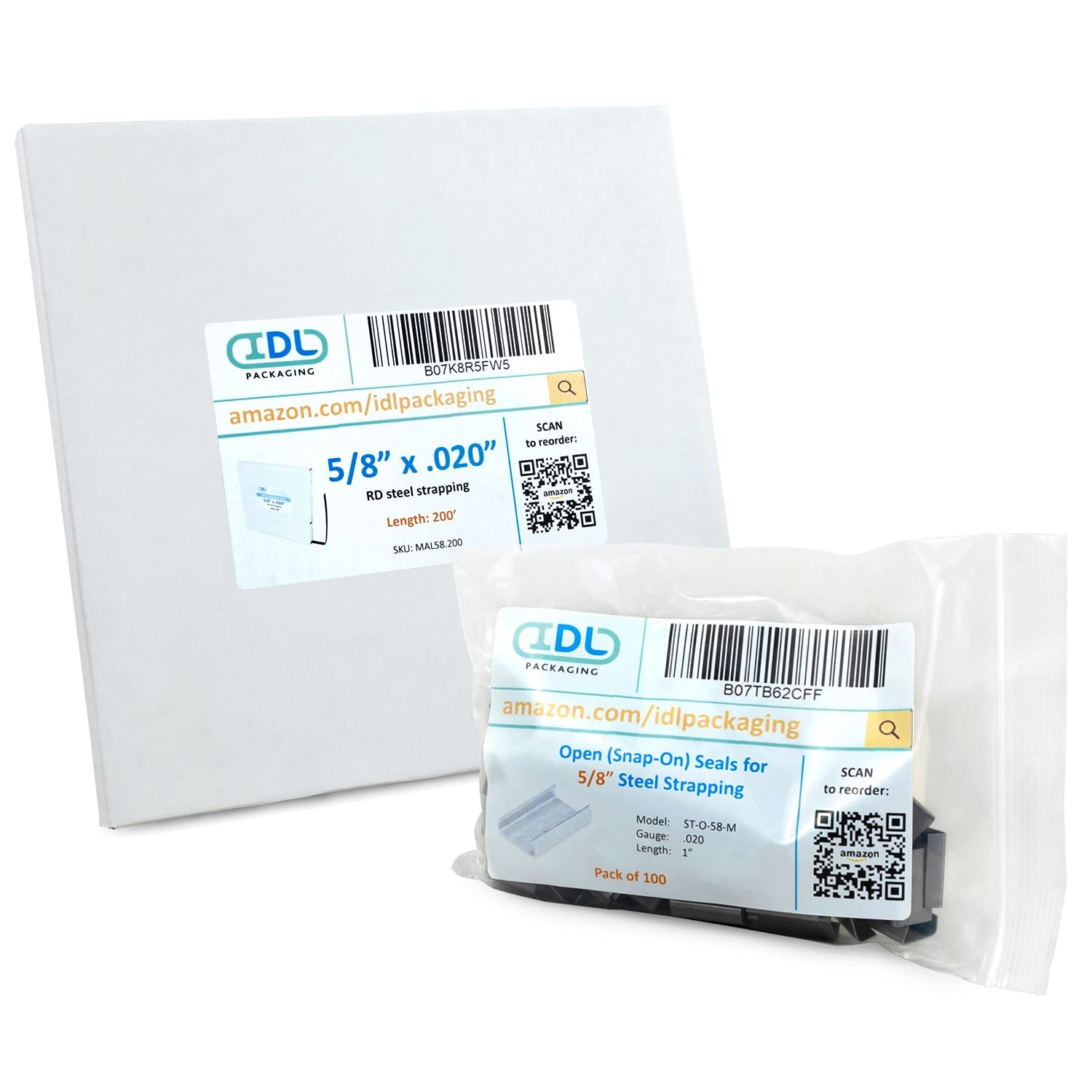 The PRO Steel Strapping Kit includes: 5/8" x 500 feet steel strapping (200 feet coil and 300 feet coil), 1400 lbs break strength; pack of 250 open (snap-on) seals; S-296 steel strapping tensioner; C-3125 double notched front action sealer/crimper; H-201 strapping cutter.All consumables including strapping and seals can be reordered separately.This Professional Grade Kit includes heavy-duty strapping tools that will serve for a long time. Perfect for high volume and intensive strapping works.We also offer two other options of complete strapping solutions that include pre-picked strapping products that work perfectly together. Standard — versatile and affordable kit for medium-volume works. Ultimate — strapping kit with Teknika MUL 3-in-1 combination tool that tensions, seals, and cuts the strap. Teknika is a premium manufacturer, 75% of Teknika MUL tools sold in 2010 are still operating on the market.The full range of strapping kits you can find at our IDL Packaging Amazon Brand Store. We presented the wide variety of strapping solutions for efficient and quick strapping of any volume, weight and shape of packaging.