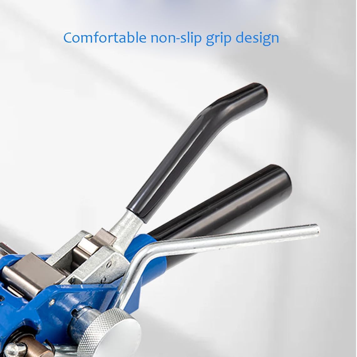Feature Ratchet Tensioner&Cutter Tool:- Applicable for steel banding’s tensioning, cutting and strapping with width up to 1” and thick up to 1/20”.- Made of Steel with high hardness, thoughness and temperature resistance, anti-rust and fire proof, secure long life.- With rotary design and serrated non-slip ratchet wheel to grip the strap, it easily cuts the tensioned steel band.S304 Stainless Steel Coil Band :- Material : S304 Stainless Steel- Size : Width 3/4” x Thick 1/32” x Length 100feet- Strength : 1700lb break strength- Anti-Rust, Moisture proof and Fire proofSteel Buckles :- Width 3/4”, 100pcs- Material : S304 Stainless Steel- Used for 3/4” wide steel banding- Durable, Moisture proof and Fire proofSpecificationsMaterial : Special SteelSize : 28x20x10cm/ 11x7.9x3.9inWeight : 6.5kg/ 14.3lbPackage Include :1pcs Ratchet Tensioner & Cutter Tool100Feet 3/4”Wide S304 Stainless Steel Coil Band100pcs Steel Ear-Lock Buckles Operating Instruction> Step 1 : Pass one of the strap through the buckle and reserve 5cm> Step 2 : Bend the reserved steel strap.> Step 3 : Bundle the strap on the object and insert the strap into the buckle.> Step 4 : Clamps the strap with the banding tool, pull down the handle to tighten the strap, until to the appropriate tightness.> Step 5 : Turn the banding tool to the two corners to close the buckle, pull down the blade handle to cut the steel strap.> Step 6 : Hammer the two corners of the buckle, complete the installation.