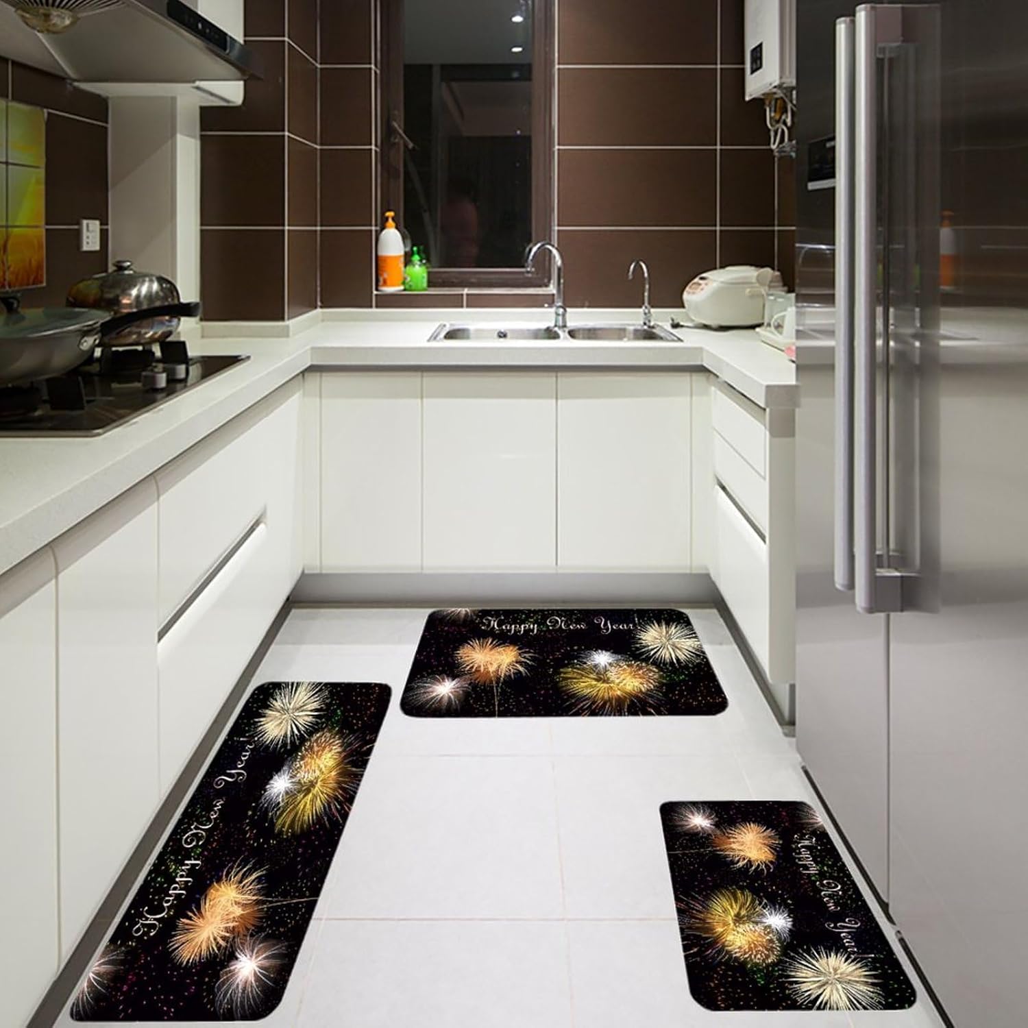 Transform your daily routine with our 3PCS Kitchen Mats for Floor—a set that combines comfort, style, and practicality. As a Cushioned Anti-Fatigue Kitchen Rug, it provides a soft, supportive surface to ease the strain of long hours standing at the sink or stove. The Non-Slip Standing Sink Mat design ensures it stays put, even on busy kitchen floors, while the Waterproof Non-Slip Kitchen Mat feature repels spills for quick cleanup.This versatile set isn't just for kitchens. Use the Kitchen Floor Mat in your office to create a more comfortable standing workspace, or place the Non-Skid Standing Mat in the laundry room to cushion your feet while folding clothes. As a Kitchen Decor Runner Rug, it adds a cohesive touch to any room, blending with both modern and farmhouse decor styles seamlessly.Crafted with pill-resistant flannel, these Comfort Kitchen Mats are built to handle daily use without losing their softness or shape. The Farmhouse Kitchen Rugs design brings a warm, inviting feel to your home, while the Waterproof Non-Slip Kitchen Rug functionality ensures long-lasting use. Easy to clean and quick to dry, this set is a practical and stylish addition to any space, from cozy kitchens to busy office floors.