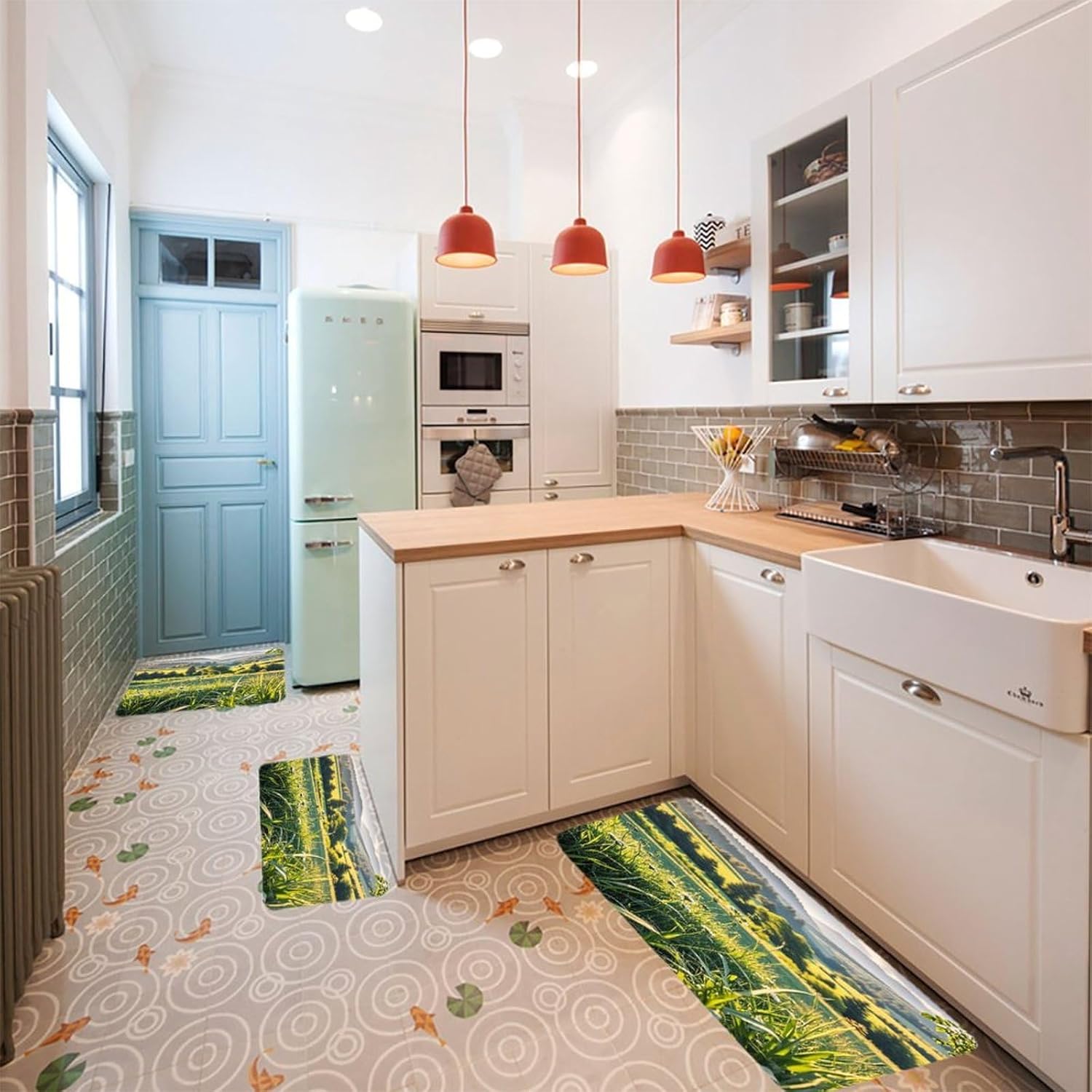 Transform your kitchen, office, or laundry room with our 3PCS kitchen mats set—a must-have farmhouse kitchen rugs and spring kitchen mats combo. As a non slip soft kitchen area rug and cushioned anti fatigue kitchen mat, it's crafted from pill-resistant flannel that offers a gentle, supportive surface for standing long hours. The farmhouse runner rug and farmhouse low-pile runner rug pieces feature a low-profile floor mat for kitchen design, ensuring they fit effortlessly under doors and in tight spaces.This kitchen decor runner rug set is more than just a stylish addition; it's a practical non-slip standing sink mat. Whether you're washing dishes, working at your desk, or doing laundry, the anti fatigue mats provide steady support to keep you comfortable. The non-slip backing keeps each kitchen floor rug securely in place, even in high-traffic areas.Perfect for indoor and outdoor use, this set embodies the cozy charm of farmhouse kitchen rugs and the fresh vibe of spring kitchen mats. It's a versatile, easy-to-care-for solution that combines functionality with timeless style, making it an ideal choice for any home upgrade.