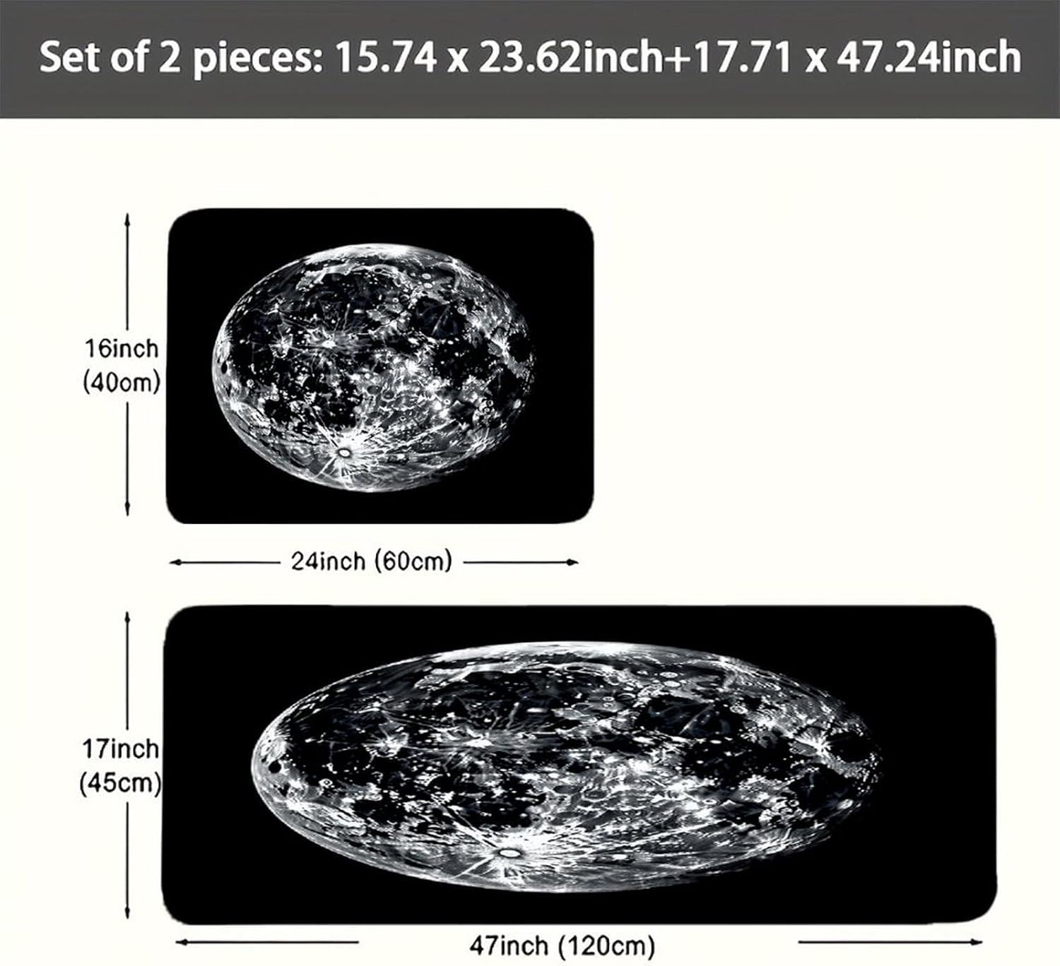 Elevate your standing experience with our 2-piece Cushioned Anti Fatigue Mat set, designed to blend comfort, functionality, and style across every room in your home. As a Comfort Desk Mat, it also eases the pressure of long workdays, making it a must-have for remote workers and home chefs alike.The Cushioned Anti-Fatigue Non-Skid Rug core offers targeted support that reduces strain on your feet, knees, and lower back—perfect for anyone who spends hours standing. Unlike thin, flimsy alternatives, this Moon Kitchen Rug uses pill-resistant flannel that stays soft, even with daily use. It works equally well as a Non Slip Comfort Standing Mat in the laundry room, turning tedious folding and sorting tasks into a more comfortable routine.With its warm, inviting aesthetic, this Farmhouse Anti Fatigue Mat fits seamlessly into rustic, farmhouse, or modern home decor. Use the Cushioned Kitchen Rug as a soft landing spot by your bathroom shower, or bring it outdoors to create a comfortable standing area for gardening or grilling. Every detail is crafted to fit your busy lifestyle, from the easy-clean fabric to the versatile sizing that adapts to any space.