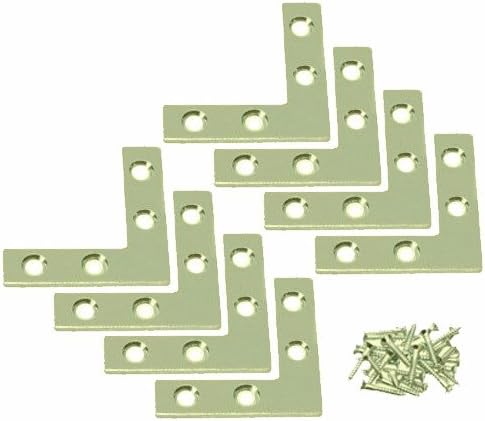 Wideskall 2" inch Flat Corner Angle Brace Repair Plated Bracket Bright Brass w/ Screws (Pack of 4)