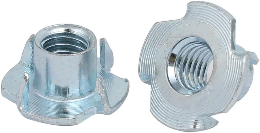 These nuts are used to provide a threaded socket in wood.Simply tap the nuts into a suitably sized hole and the prongs will hold them in position.T-Nuts provide a strong, reliable and easy to fit low cost anchor for wood and chipboard.T nut inserted into the appropriate size hole and tapped in with a hammer.The 4 prongs will stop the T nut from turning when the fixing is being tightened.(474uiyh1852sedt3847)Enviamos el envío desde China por un período de 10 a 30 días.