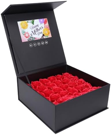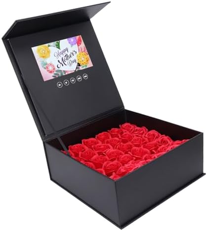 Spec: Item Type: Jewelry Flower Box Material: LCD Size: Approx. 265 x 265 x 112mm / 10.43 x 10.43 x 4.41in Screen Size: 7 inch LCD Memory: 128M (Built in) Image Support: JPEG, BMP, GIF, PNG, TIF and other formats of static images with various pixels displays Video Support: MP4, AVL, MPEG, WMV, RM, RMVB, MKV, VOB, MOW, FLV, ASF, DAT, 3GP, MPG, etc. Battery Information: 1500mAh Battery (built in battery) How to Use: 1. Open the flower box to automatically play the video in a loop; the video will stop playing when the greeting card is closed. 2. Charging: Use the USB cable to connect one end to the computer and the other end to the greeting card. 3. Do not bend, slap, or drop the flower box. 4. Make sure to close the video before connecting to the computer. 5. When downloading the video, place the video file in the corresponding folder, or copy the data from this readable disk to the computer or USB drive. 6. This product is reusable. Package List: 1 x Jewelry Flower Box 1 x Charging CableNotePlease note that gift box pattern will be shipped randomly.