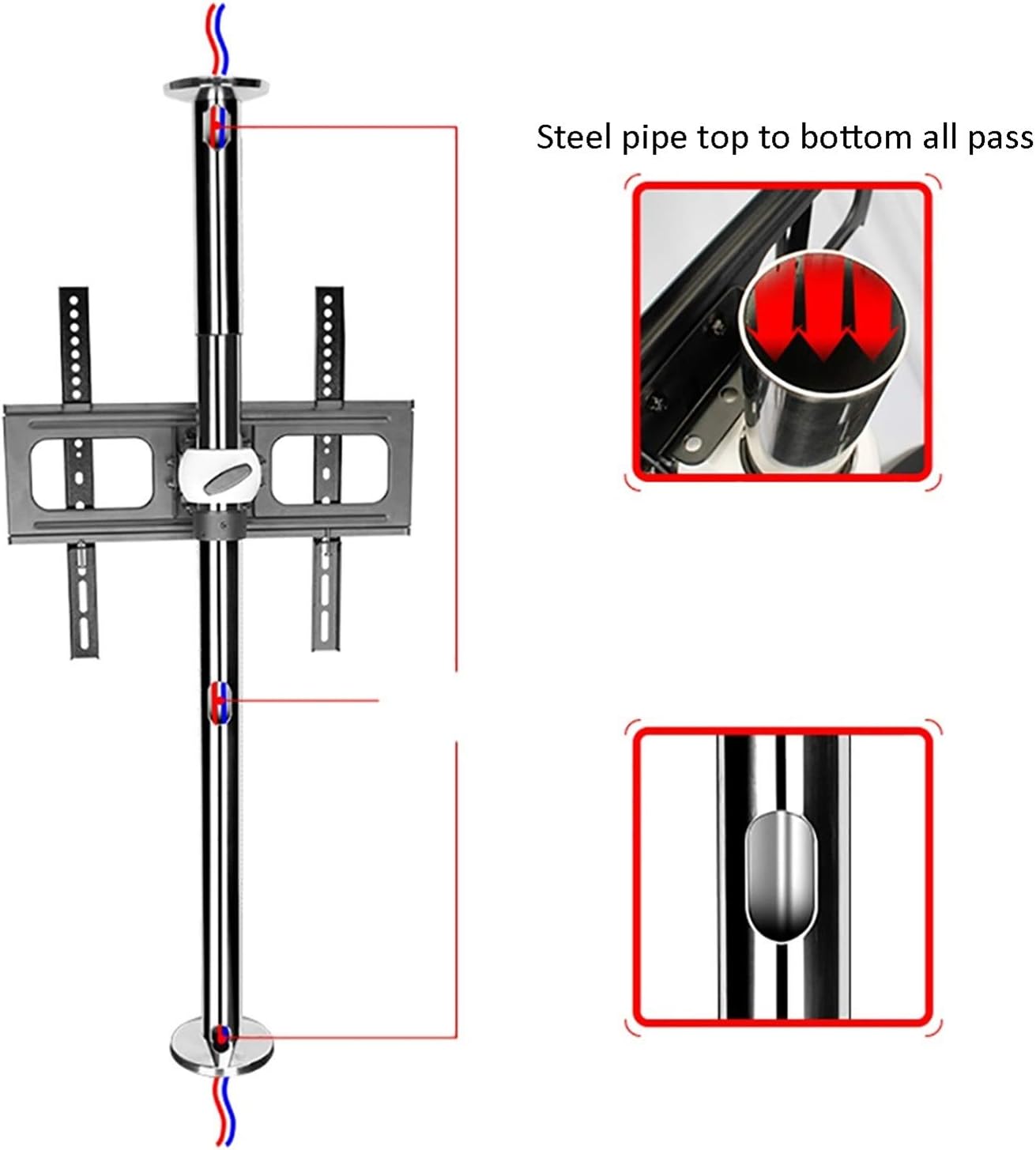 You can change the way you through the TV stand. You can adjust it to a position that suits you and experience a more relaxed way of viewing. The bracket is made of aluminum alloy and is . About our products: Please see here The following is an introduction to our products. Specification: Dimensions: as shown Material: Cold rolled steel plate + stainless steel pipe Scope of application: 32-55 inch Color: black Height adjustment: 66-82/86-114mm Product load: 0-45kg Tilt angle: ±15° Left and right rotation angle: 360° Adapted hole distance: Within 400*400mm Scope of application: office, living room, balcony, dining room, kitchen Reminder: 1. This product is manual measurement, there is an error of 2-3cm, please refer to the actual object received 2. This product only includes TV stand and its accessories