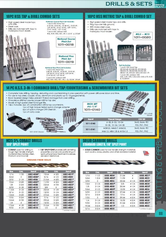 | Item Type Name | 14PC HSS 3-IN-1 TAP/DRILL KIT(6-32~1/4-20) |