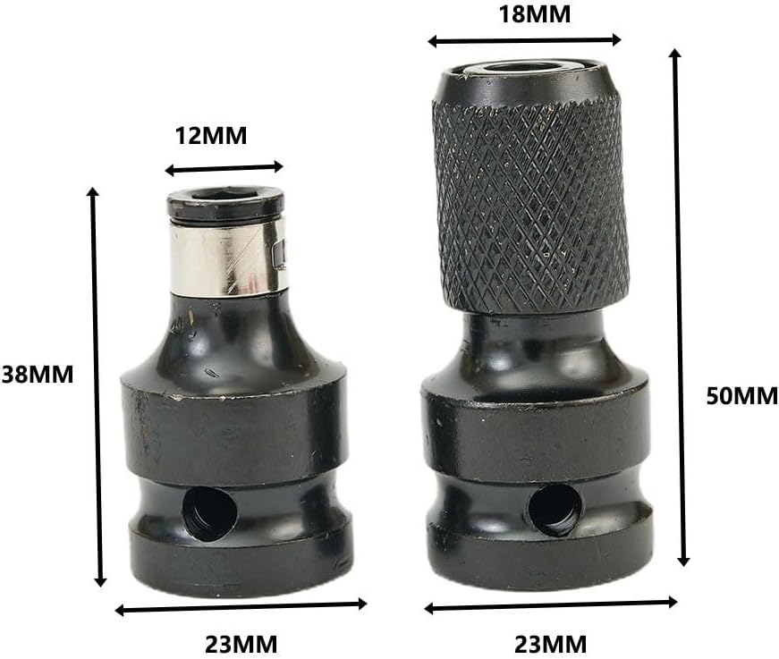 Features:*2Pcs/set 1/2 Square Drive To 1/4 Hex Shank Drill Bit Chuck Adapter Converter Kit* and*1/2" Square Female Drive to 1/4" Hex Female Socket Adapter*Convert any air or power wrench into a drill or ratcheting wrench into a driver*Securely holds any 1/4" hex shank bits*Quick Release Converter for the WrenchSpecifications:*Color: As Pictures Show*Material: Steel*Size: 50*23*18mm (Approx)Package Contents:1 Set of Drill Bit Chuck Adapters (2pcs)
