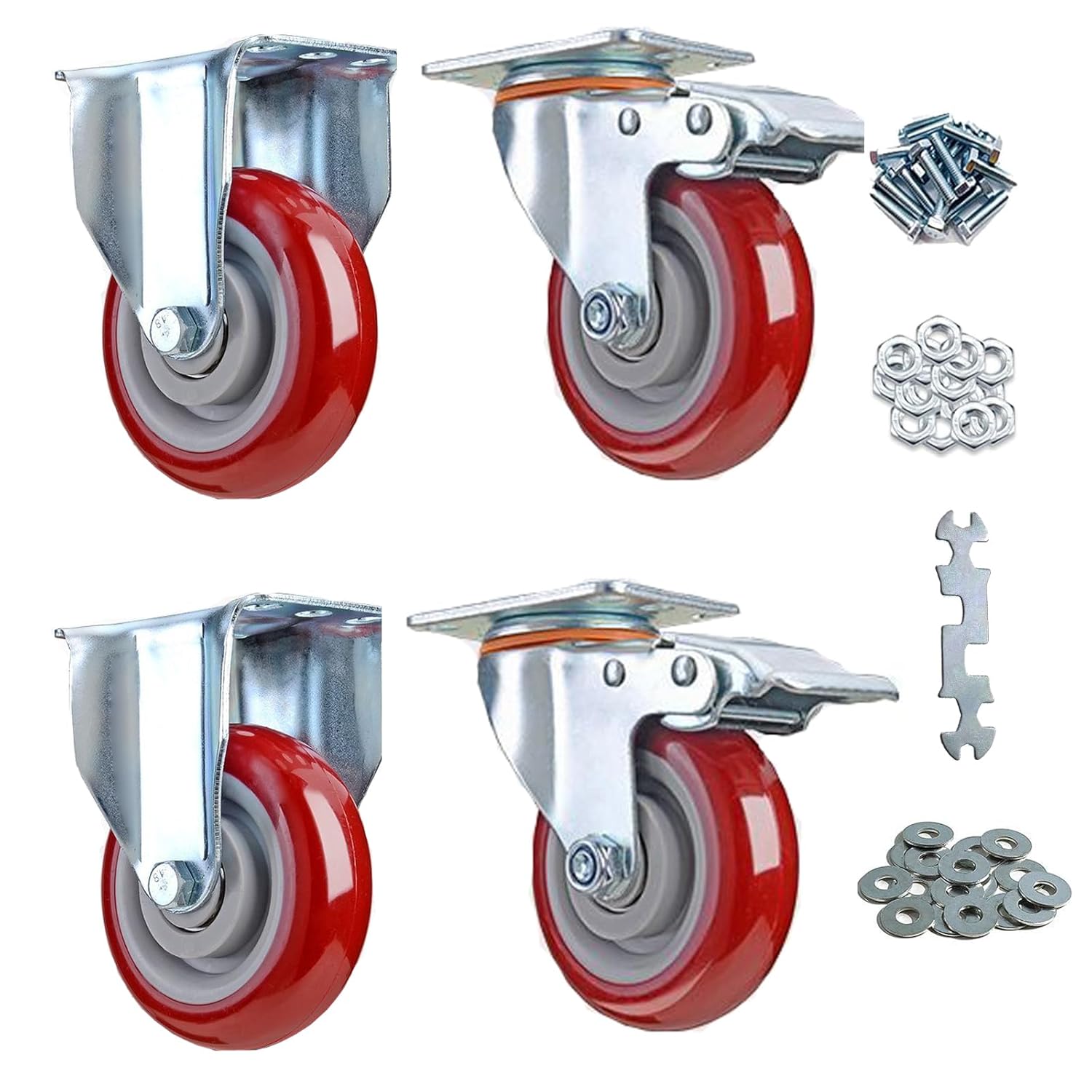 Heavy Duty Casters Set of 4 for Cart, Trolleys, Furniture and Workbench(2PCS Fixed Caster Wheels 2PCS Locking Swivel Casters)