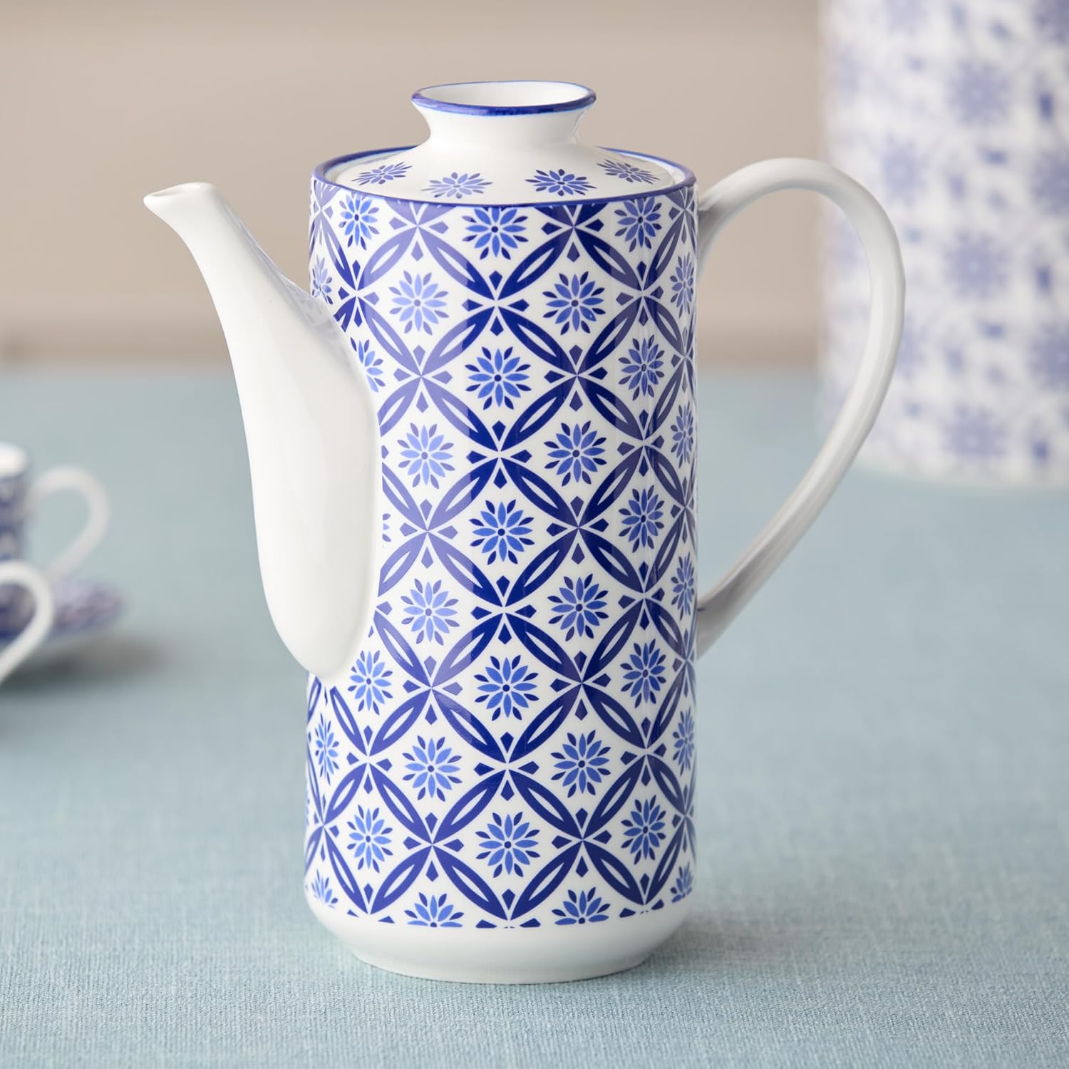 | Item Type Name | Madison Teapot - 8.5 x 4 x 9.5 Inches, 48 oz, Premium Porcelain, Elegant Blue and White Geometric Pattern - Ideal for Tea and Coffee or as a centerpiece |