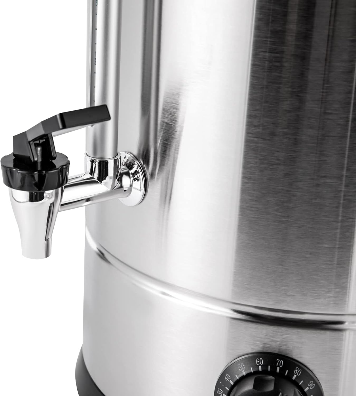 SpecificationsMaterial: 304 Stainless Steel, 201 Stainless Steel, PP, PlasticProcess: BrushedProtection: Anti dry Burn ProtectionColor: Silver, BlackTime Required for Boiling: 15 Minutes (the Water Temperature is About 25 ℃ for Testing)Adjustable Temperature: 30-110°C/86-230°FVoltage: 110VPower: 1KWPlug: US StandardProduct Height: 44cm/17.3inBottom Diameter: 26.5cm/10.4inTop Diameter: 34cm/13.4inPacking Size: 33x33x47cm/12.99x12.99x18.5inGross Weight: 4.4kg/9.7lbsNet Weight: 3.7kg/8.15lbsLabel Capacity:12LCapacity:11.3L (Full Water)Real Capacity :9.2L (MAX Mark)Package Included1x Coffee Urn1x English User ManualDetailsDouble-layer Barrel Wall: The double-layer thickened barrel body strengthens the heat preservation effect and can keep warm for a period of time even after power failure. The double-layer barrel wall also has a good anti scald effect to prevent accidental scalding. Anti-scalding Handle: The handles on both sides of the bucket, the faucet, and the lid are made of insulated, anti-scald PP material for comfortable use and safe movement.Indicator Light: It has a heat indicator light and a keep warm indicator light to indicate the working status of the coffee maker, so you can quickly know when the coffee is ready. Practical Faucet: It is installed with a two-stage faucet dispenser, which is firmly connected, well sealed without leakage, has smooth water flow, and will keep your drink station clean. You can press or pull the top of the lever to fill into cups and single-cup or continuous pouring are both available.