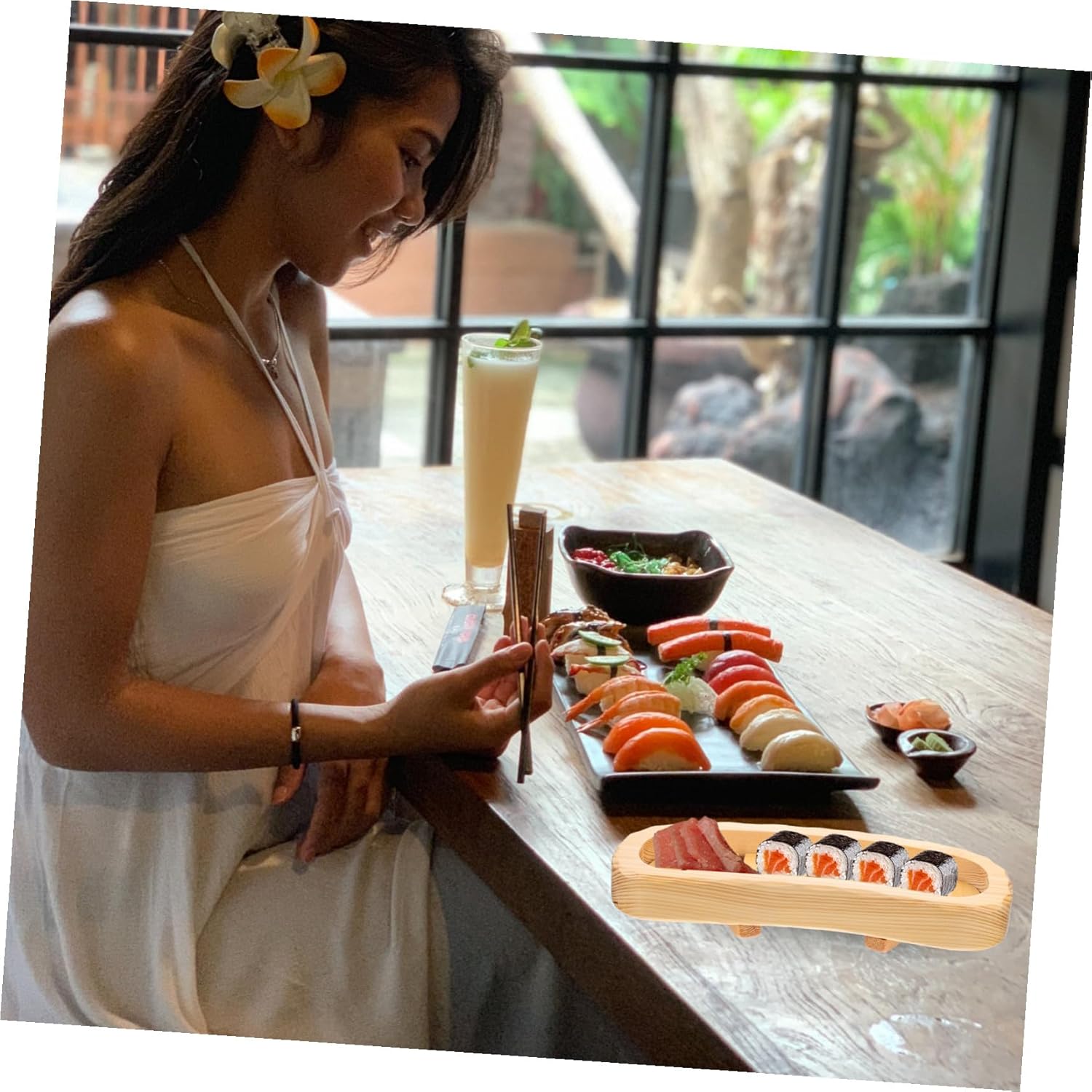 Package List 1 x sushi plate Characteristics -Color: Khaki japanese style sushi serving tray. -Material: Wood japanese sushi dish. -Size: About 37.00X16.00X5.00cm/14.54X6.29X1.97inch Sashimi Dish. -Product Info:Sushi plate -Excellent workmanship and fine details its popularity and durability Food Serving Plate. -Perfect gift for a sushi enthusiast or a Japanese culture lover sushi trays. -It is made of and rigorous manufacturing processes japanese plates. -Japanese style design, classic and refined, unique and fashionable, and it is also a great table decoration Food Service Dish. -Suitable for storing sushi, vegetables, sashimi, etc. Can make your food more refined sushi tray.Goods Informationjapanese plates Searching of a sushi board food serving tray? Our natural wood sushi tray board will be the for you.sushi serving plate Made of material, enough for your long-term use.Sashimi Dish Practical and portable design, its popularity, also very decorative