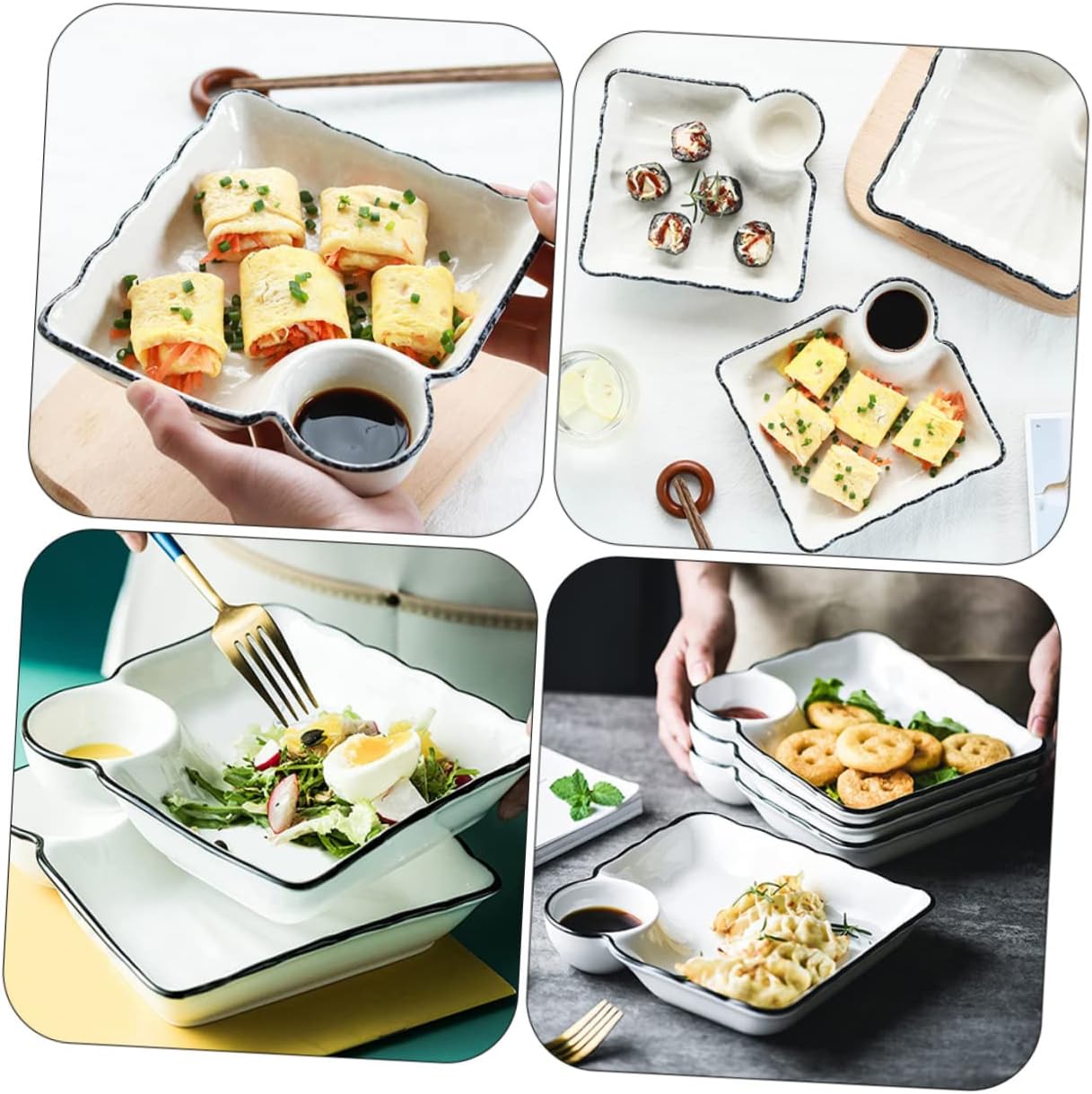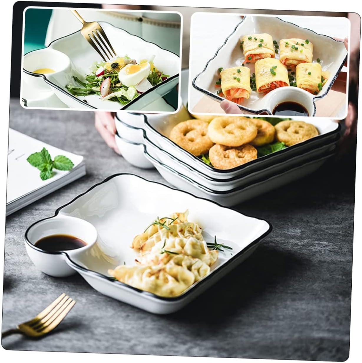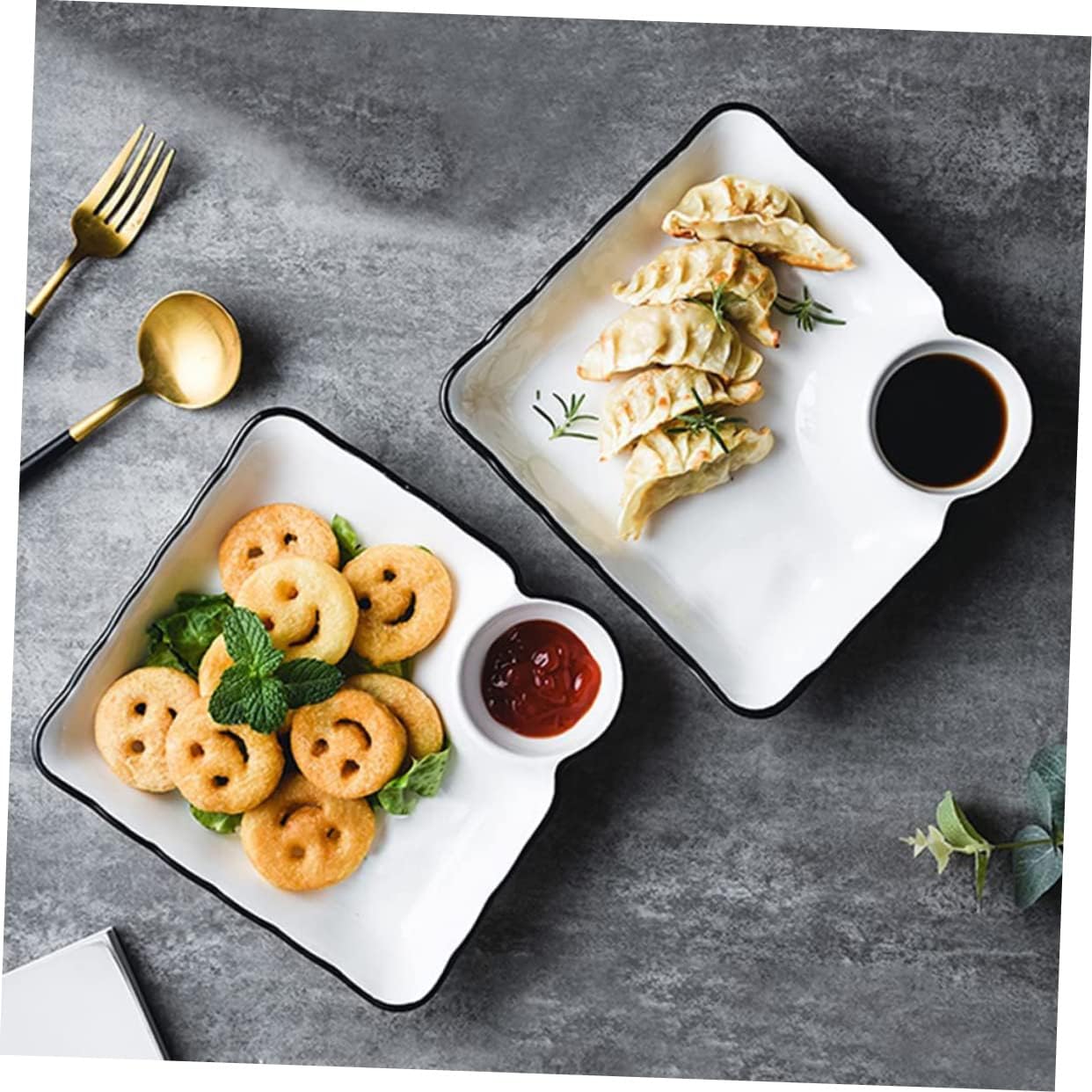Package List 2 x Dumpling Plates Features -Material:Ceramic household food dish -Color:White ceramic dipping plates -Size:18.50X17.30X3.80cm/7.27X6.80X1.49in sushi plates -Multi-functional plate with small saucer dish inside, great for serving dumpling, sushi, etc dumpling tray. -It is easy and convenient to clean, and easy to store when not in use ceramic -This plate is designed in compact, light in weight, easy to use and carry ceramic plates. -Made from and ceramic material, and to use dumpling dip -Suitable for many occasions use, decorative and , and excellent craftsmanship home dumpling Goods Descriptionceramic dipping plates Are you looking for a multi-functional food plate? Are you in search of a sturdy, trustworthy plate that can help you to store kinds of food? , ! Our food plate, made of and ceramic material, must meet your needs.sushi dipping plate A nice storage container for you