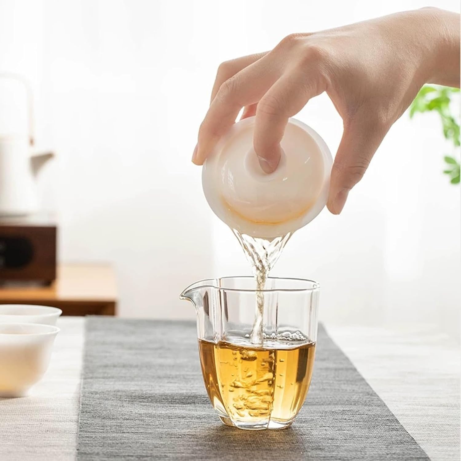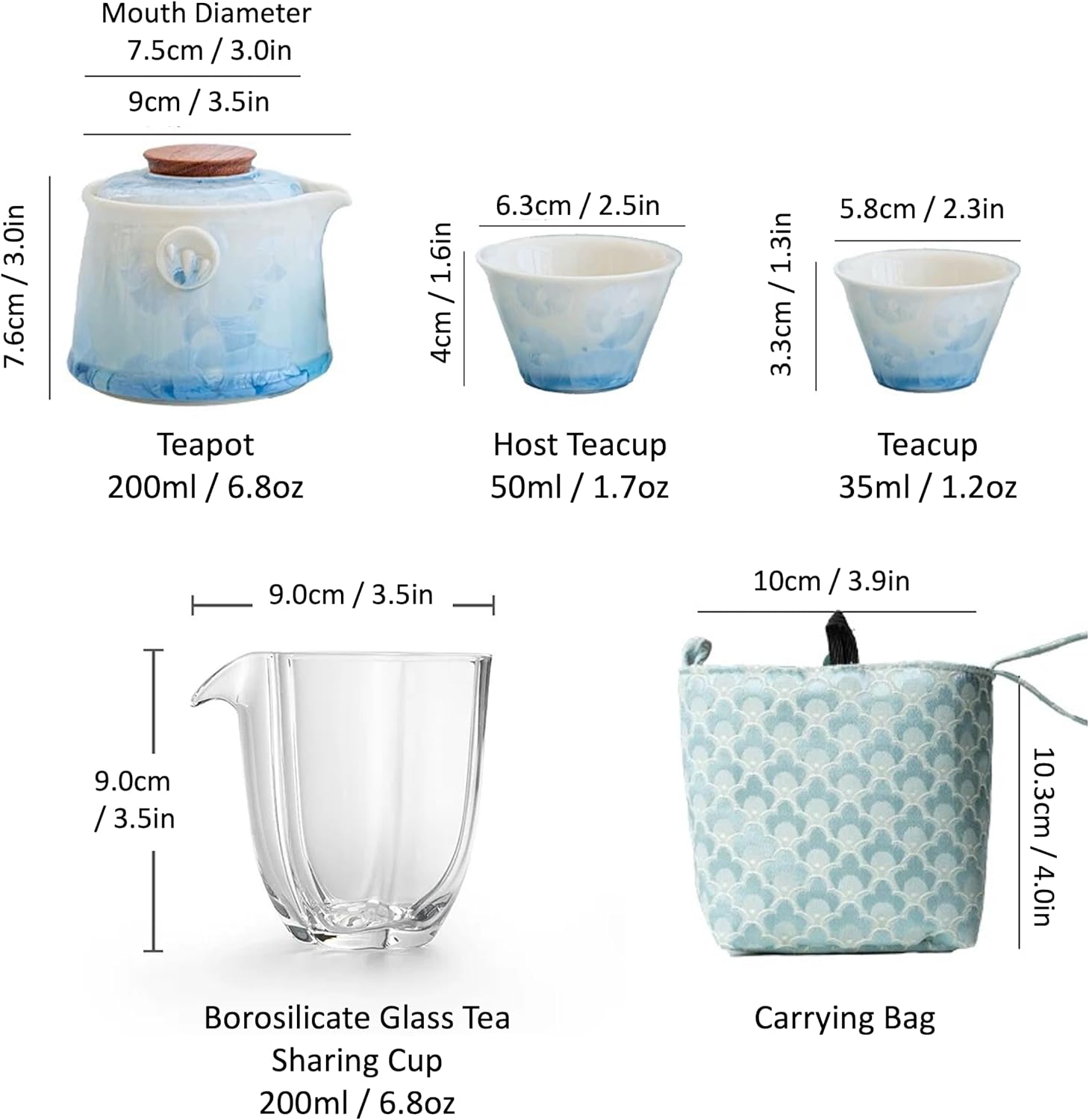 Hermit Life Chinese Travel Tea Set, Portable Ceramic Teapot for One to Two, Gongfu Tea Set with Crystal Glaze, 1 Pot 2 Cups, Gift for Tea Lovers (Icy Blue), Hermit Life Borosilicate Glass Tea Sharing Cup, Kungfu Tea Pitcher, Gongfu Fairness Cup (7 oz)