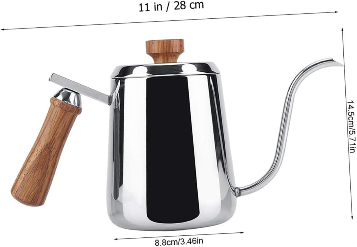 Package List 1 x kettle Features -Material:Stainless steel, wood servers -Capacity:600ml stainless steel coffee pot -Color:As Shown camping coffee -Size:28.00X14.50X8.80cm/11.00X5.70X3.46in gooseneck kettle stove top - Precise spout for accurate pouring Versatile use for coffee, tea and more, widely used in daily life jug. - This kettle can be given to your friends or dear family members as a housewarming cold brew maker. - Adoption of stainless steel material, this kettle is high temperature and shock resistance filter. - Streamlined spout design, quickly water collection, no dripping, conform to ergonomic aesthetics gooseneck kettle. - Sturdy stainless steel construction Ergonomic wooden handle for comfortable grip, very useful gooseneck kettle pot.Goods Descriptiongooseneck kettle stove top This kettle is a coffee kettle, manufactured with stainless steel, wooden materials, it can serve you for many years.coffee bar accessories It is for you to heat water, and them to brew the coffee, practical and convenient.drip coffee kettle Stainless steel materials can its durability and practicability