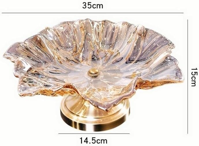 Product: Fruit plateMaterial: Crystal glass + HardwareSize: As shownColor: As shownScope of application: families, hotels, coffee shops, etcPackaging: YesTarget users: Candies, fruits and dried fruitsPackaging contents: Fruit platter (other items excluded)Note: Due to manual measurement, please allow an error of 2 to 3 centimeters.Due to lighting conditions, the actual color may slightly differ from the image.