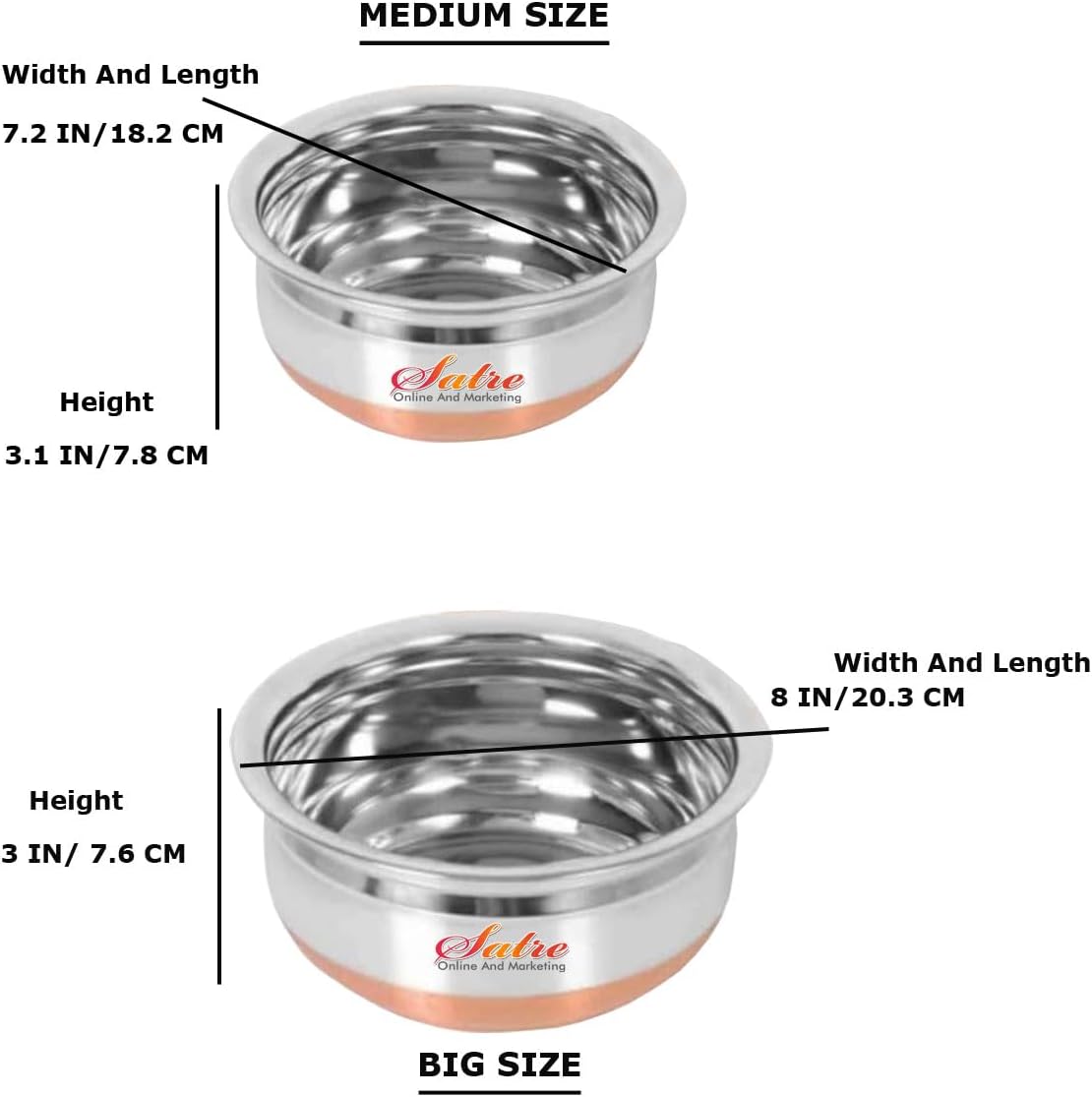 Stainless Steel with Copper Bottom Handi set of 2 Pcs for kitchen Deep fry pot pans,The Copper Handi Bowl is made of good quality materials which sure to add to its durability. All the utensils are of mirror finish and give an elegant look. Used for storing vegetables.