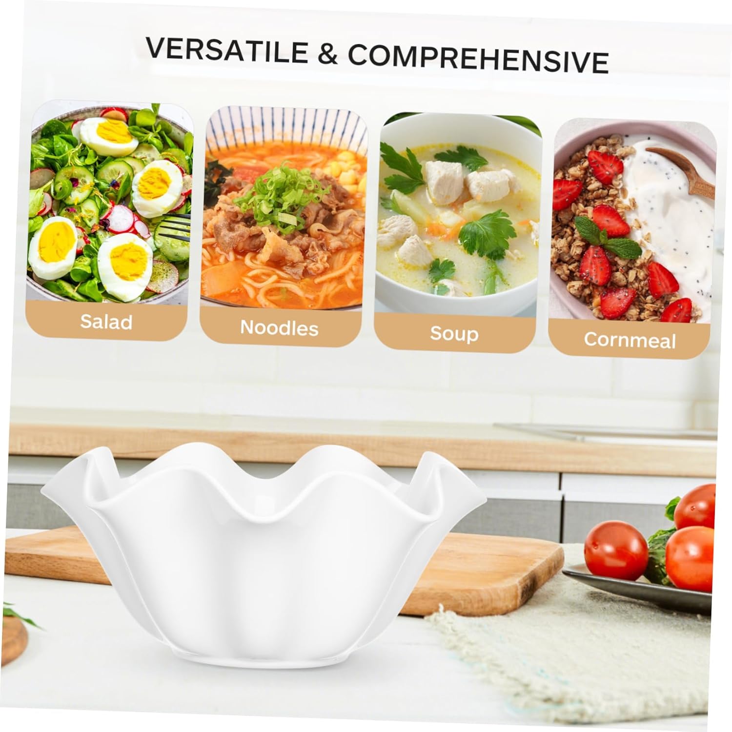 Package Include 1 x Ceramic Bowl Characteristics -Material:Ceramic serving bowls for entertaining - Size(880ml): 21.20X21.20X9.80cm/8.33X8.33X3.85in white modern fruit bowls - Color: White flower shaped serving bowl -The Soup Bowl is made of high-end materials with fine workmanship. This is an excellent tableware relish bowl. -Distinctive tableware, whether for daily use or home decoration, is a very party bowls for serving food. -Beautiful appearance and workmanship the popularity and popularity of the product oversized salad bowl. -This multipurpose food bowl is suitable for families, hotels, restaurants, dormitories and other places porcelain dessert bowl. -Perfect for holding salad, fruits and other food to show your good taste to guests flower shaped ceramic desert bowl.Goods Informationlarge salad bowl with lid Are you still looking for a and delicate Food Serving Bowl? Then you miss our product! Made of premium ceramic material, this soup bowl is and for long time-serving.salad bowl You deserve one!.serving bowls for entertaining Simple style design, you will enjoy the easy and happy food time.white flower shaped salad bowls The excellent workmanship of our product will bring you a