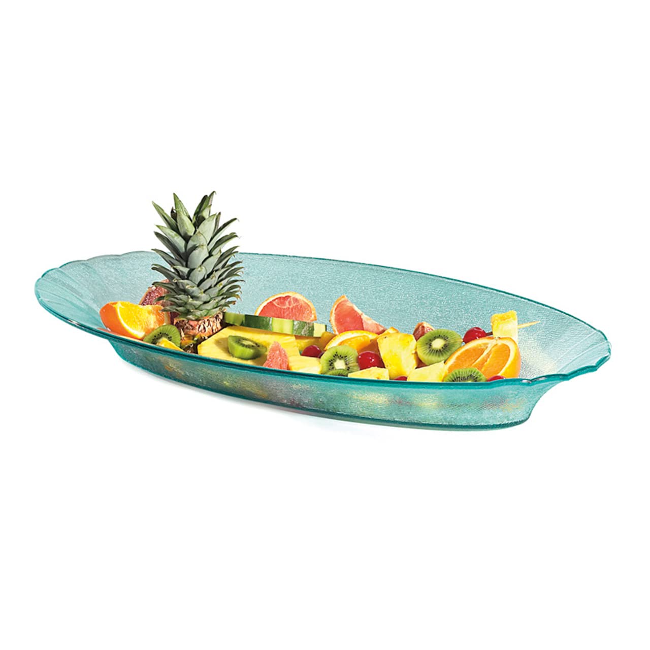 The GET HI-2034-JA Cache oval bowl brings a refined touch to restaurant tables, buffets, and events with its elegant jade color and the subtle texture of tinted glass. Crafted from sturdy polycarbonate, this 26 1/2-inch long by 13-inch wide bowl resists breaking and reliably endures frequent use in busy commercial kitchens. Its generous 6-quart capacity makes it ideal for presenting entrees, fresh fruit, side dishes, or desserts, while the rim-full capacity reaches up to 8.2 quarts for larger portions or gatherings. Designed to complement a range of decors, the bowl’s appearance elevates both everyday and special occasion presentations. Choose this versatile serving piece to combine lasting durability with visual appeal.