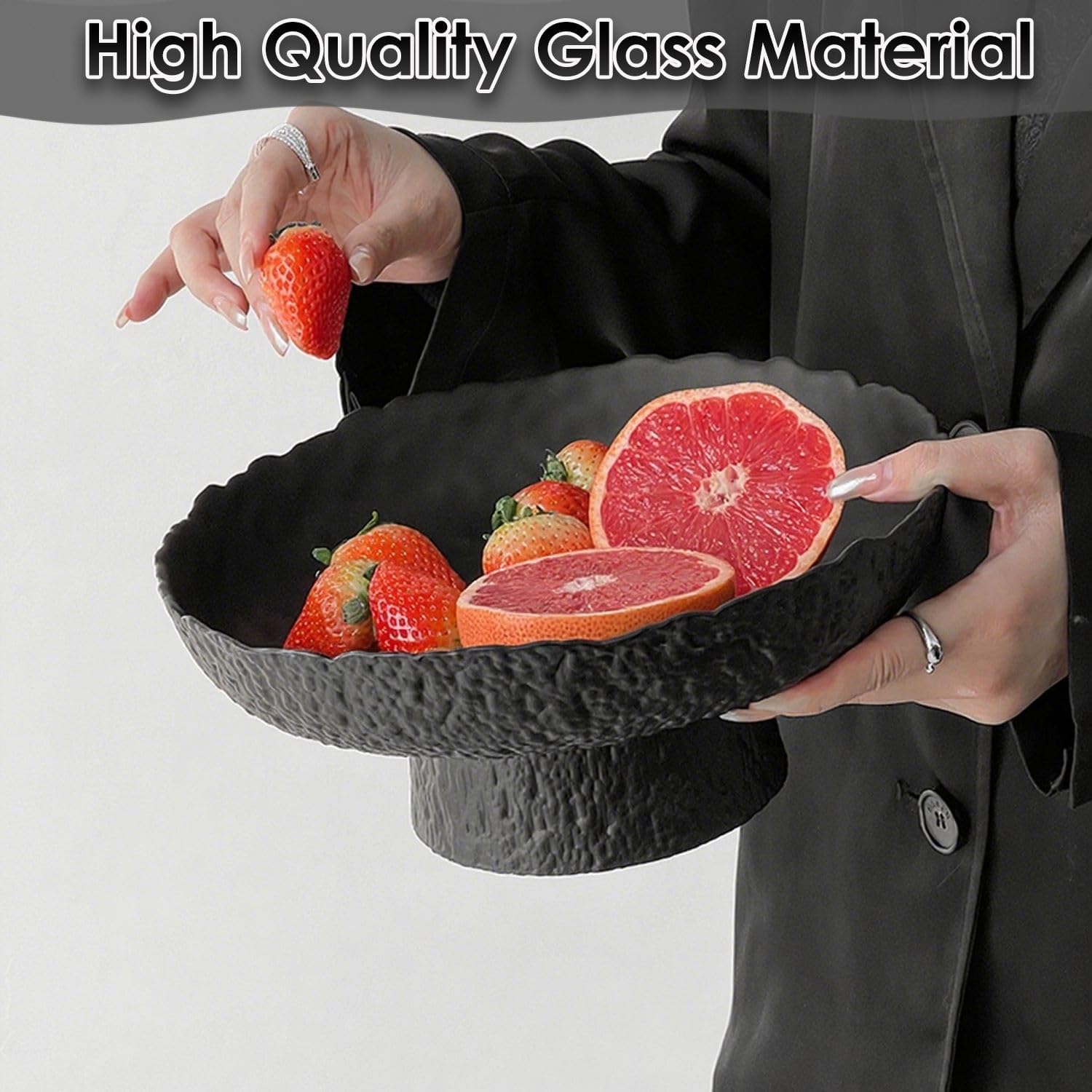 Glass Fruit Bowl for Kitchen Counter, Black Pedestal Bowl, Large Footed Serving Bowl, Decorative Bowls for Centerpiece Home Decor, Modern Fruit Holder