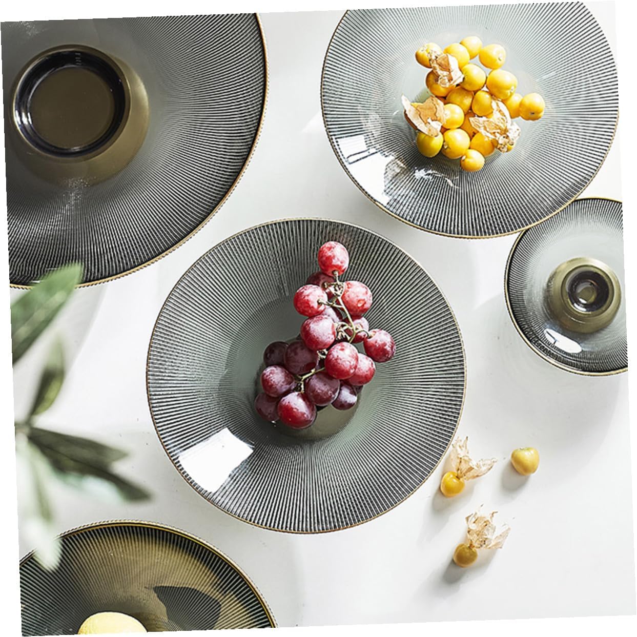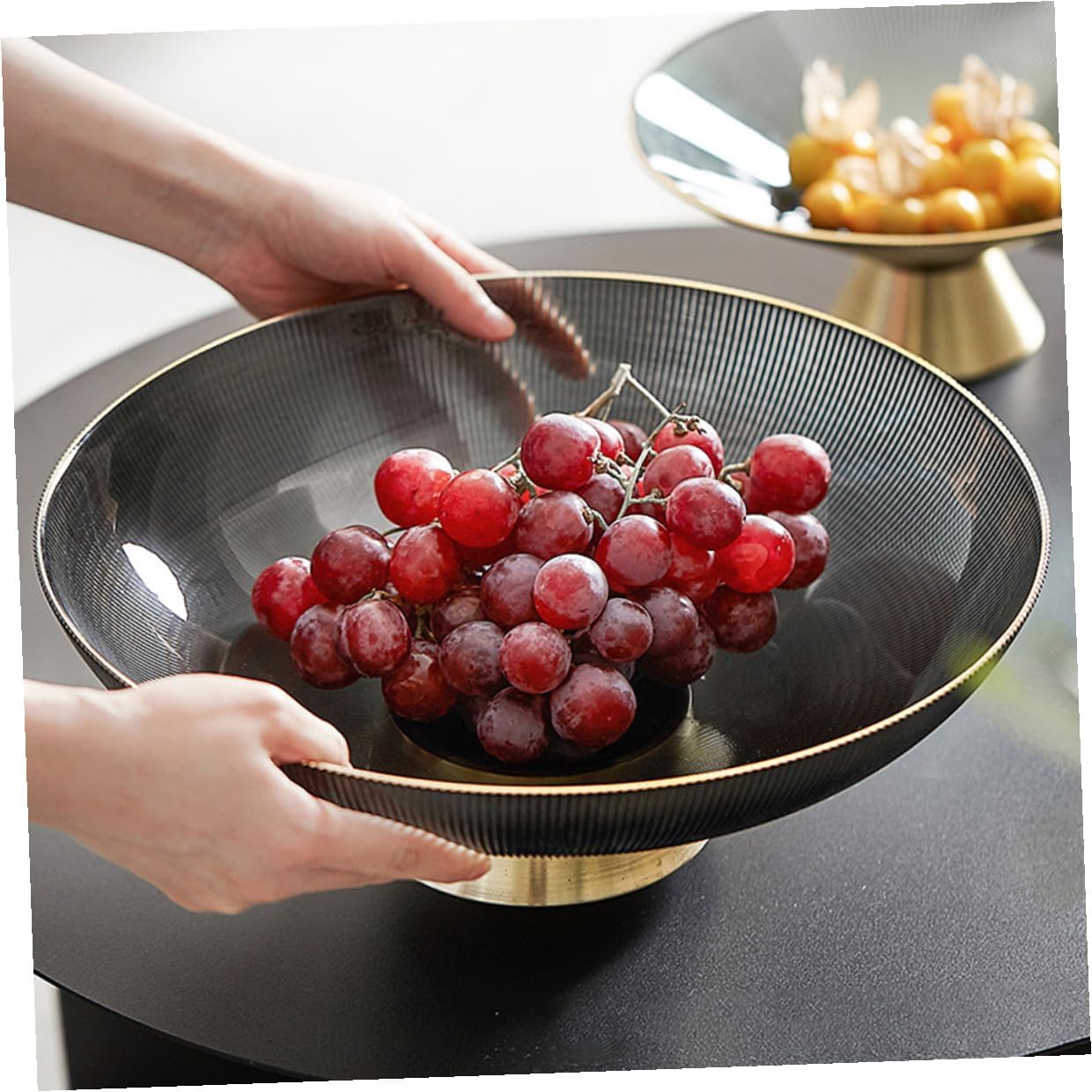 Package List 1 x Fruit Tray Characteristics -Product Info:Glass fruit tray - Size: 24.50X24.50X11.50cm/9.63X9.63X4.52in -Material: Glass. - Color: Grey - Made of high-grade grass material, which is and practical, can serve you well - Easy to clean and store, lightweight and suitable size, designed with chic shape - Wide range of uses, suitable for placing fruits, biscuits, candies, chocolates, pastries and snacks Glass dish. - Can maintain a beautiful appearance after a long time of use, not easy to fade fruit bowl glass - Classic style design, elegant and delicate food plate, make your food attractive pedestal fruit bowlGoods Informationlarge pedestal bowl Not only a food storage plate, but can also be a photo prop.fruit holder for kitchen countertop This simple snack plate is made of premium and grass material, footed design, make it more creative and chic.decor bowl Suitable for tea room, kitchen, living room, etc.Dried Fruit Tray You can use it to display cupcakes, desserts, candies, fruits, etc