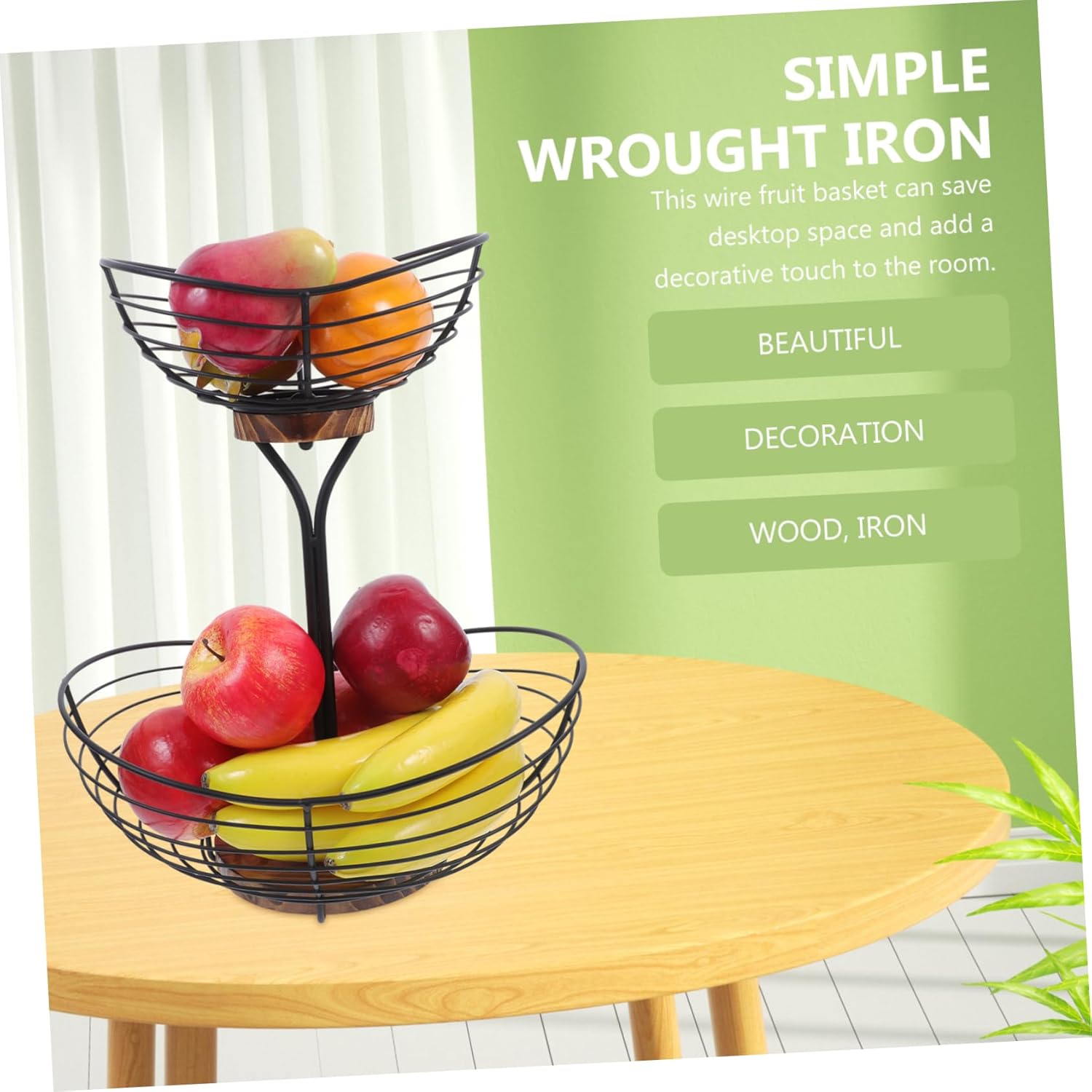Package List 1 x fruit basket Features -Size:36.50X31.00X31.00cm/14.34X12.18X12.18in vegetable bowl for kitchen counter -Color:Black fruit baskets for kitchen counter -Material:Wood, iron wire basket fruit holder - Keep your elongated fruits, such as bananas, organized and easily accessible with the fruit basket fruit bowl for kitchen counter. - The fruit bowl can be easily placed on the tabletop, creating a functional and decorative piece fruit bowls for kitchen counter. - Crafted from iron and wood materials, this fruit bowl is strong and over time banana fruit basket. - The wire fruit bowl is finely crafted with unique appearance, creating a modern and stylish aesthetic wire storage basket. - The fruit basket comes with a unique multi-layer design that adds depth and dimension to your table setting metal wire produce basket.Goods Descriptionbanana storage Its two layer design allows for easy organization and presentation of fruits.Wire Food Baskets The combination of iron and wooden boards creates a sleek and minimalist look that complements various kitchen and living room styles.vegetable bowl for kitchen counter Upgrade your fruit display with the Fruit Basket