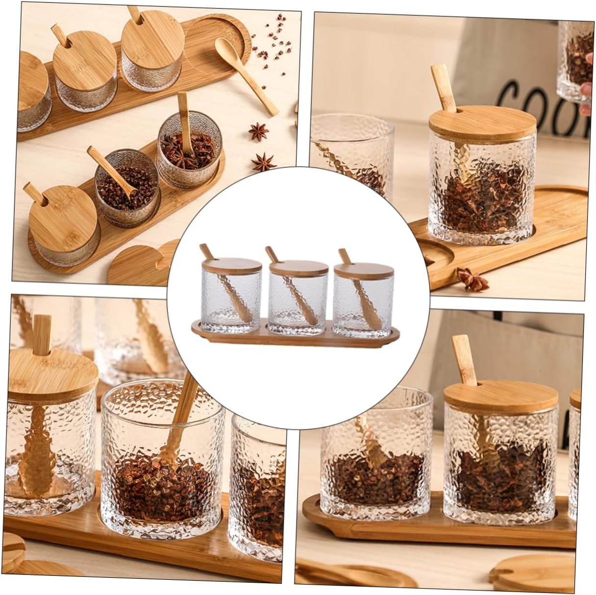 Package Include 1 x set of 3pcs spice boxes Features -Color: Transparent Creative Spice Boxes. -Material: Glass and Condiment Storage Jars. -Using and , reliable and practical, long serving time Spice Boxes. -Simple look design can match your kitchen decoration very well, practical and chic Multi-function Spice Boxes. -Can be sent to your friends or families as a warm housewarming , practical and convenient Glass Seasoning Bottles. - - and - , strong and wear- , food-grade material for use Household Seasoning Bottles. -With lid design, - and - function, keep the taste of the food Glass Condiment Containers.Goods DescriptionGlass Condiment Containers for serving seasoning storage, just like salt, spice, sugar, etc.Kitchen Spice Boxes This is a set of 3 pieces glass seasoning cans, fresh and chic, simple yet not monotonous, these practical seasoning boxes are definitely a.Seasoning Storage Bottles They can make your kitchen cleaner and tidier