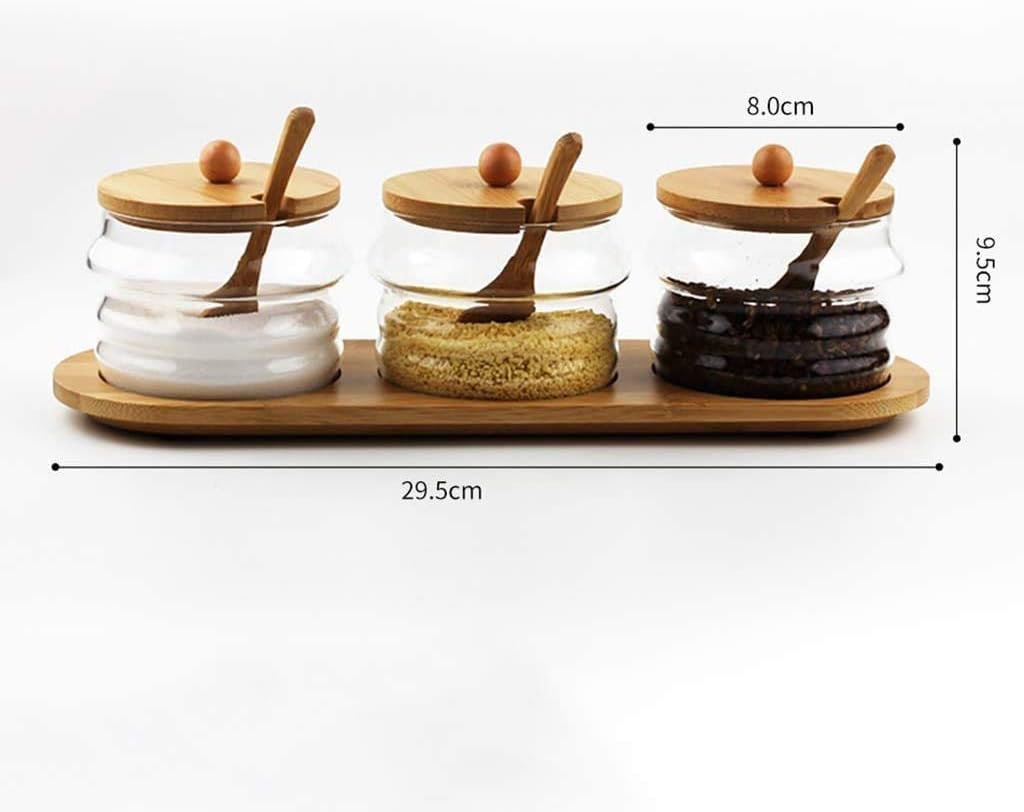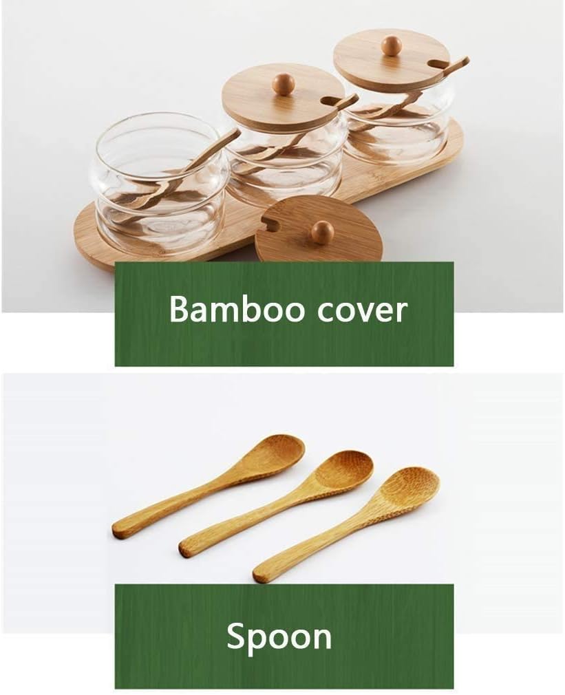 Feature Product material: high borosilicate lead-free glass, bamboo Size: about 29.5*9.5cm Color: as shown Advantages: built-in small spoon, elegant and beautiful. List 3 seasoning boxes 3 wooden spoons 1 wooden shelf Thank you for working with us. We sell products in good faith. If you have any questions, please contact us in time. We will solve it for you within 24 hours.