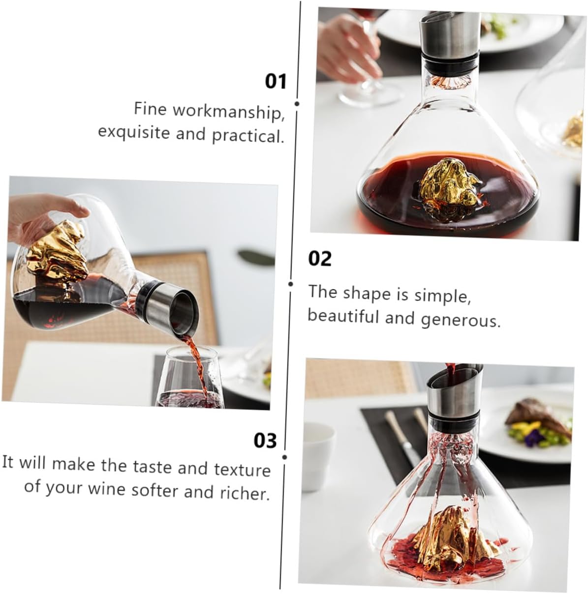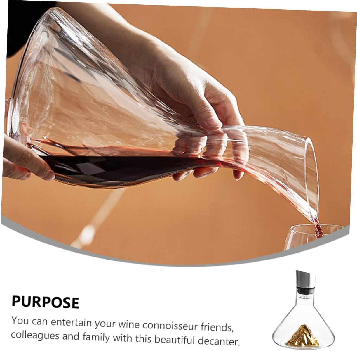 Package Include 1 x Decanter Characteristics -Material: Crystal. -Color: Golden. -Product Info:Red wine decanter -Capacity: 1500ml unique decanter. -Size: About 21.50X18.00X18.00cm/8.45X7.07X7.07inch. -Made of crystal material, smooth and bright, gentle and practical. -Can very well help you to store wine and make it have a more dense taste Red decanter. -The artistic appearance design is simple and , which can match your wine very well wine decanter. -The shape is simple, beautiful and generous, suitable for banquets or banquets, and also suitable for restaurants, bars, families, hotels, etc Fast Decanter. -You can send it to family and friends who like to drink, and they will be very happy Simple Decanter.Goods Descriptionsmall decanter Are you looking for a professional, practical and decanter? Our products will be your good choice.Simple Decanter Made with craftsmanship and crystal materials, it has excellent durability and practicality, which can the texture of your red wine and make it more delicious.novelty decanter This is a very helpful decanter and will serve you well