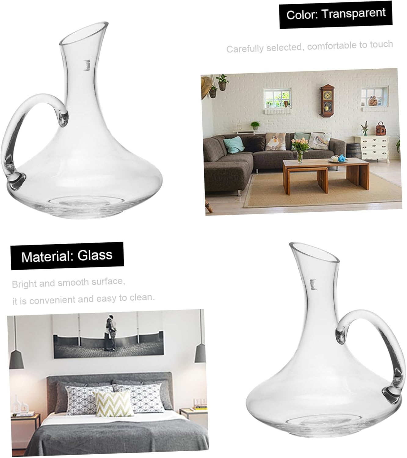 Package Include 1 x 1500ml wine decanter Features -Size: 22.00X19.00X22.00cm/8.65X7.47X8.65in whisky dispenser -Material: Glass whisky barrel decanter. -Product Info:Decanter -Color: Transparent portable wine glass. -This handle design the convenience of taking this decanter wine dispenser. -Manufactured with , explosion-proof and crack-proof whiskey decanter. -Suitable for many occasions such as restaurant, bar, home, hotel, etc wine pourer. -Also a storage container for wine or other beverages for a long time bottle decanter with handle. -The shape is simple, beautiful and generous for banquet or dinner use practical wine decanter.Goods Descriptionliquor decanter bottles And also it's a great decoration for your home.empty whiskey bottles This glass wine decanter is manufactured with strong anti- performance.practical wine decanter It fits for numerous occasions, for example, bar, home, hotel, restaurant and so on.glass Decanter A good housewarming gift choice for friends