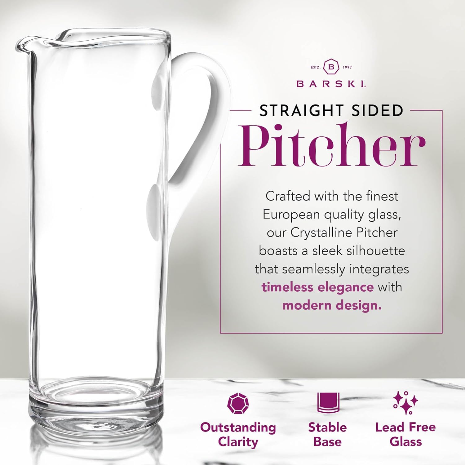 Barski Inc. has been the leader in the crystal and glass industry for over two decades. Our sterling reputation of providing the consumer with the highest quality merchandise with the most cost effective pricing has been ongoing. This pitcher is a part of the Barski Tabletop Collection that has been an all time favorite. Artistically designed to coordinate beautifully with any tabletop decor. Rest assured this pitcher is a will make a statement of elegance, thereby changing the ambiance from the simplest affair to an upscale event.