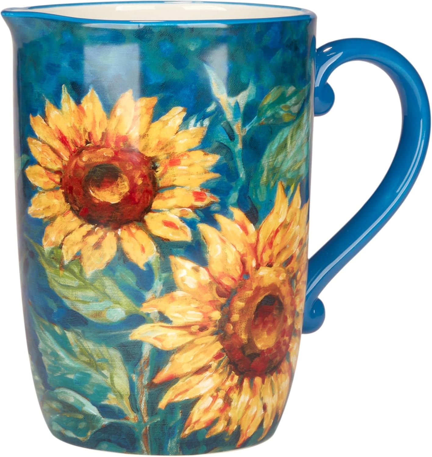 Quench your thirst for both beauty and function with the Golden Sunflowers Pitcher, a radiant addition to any table setting. Designed by the esteemed Paul Brent for Certified International, this pitcher stands 9.25 inches tall and holds a generous 104 ounces, making it perfect for serving refreshing drinks to a gathering of friends or family. The vibrant sunflower design wraps the pitcher in a tapestry of rich, warm hues that echo the lazy days of summer, transforming even the simplest refreshments into a feast for the eyes.