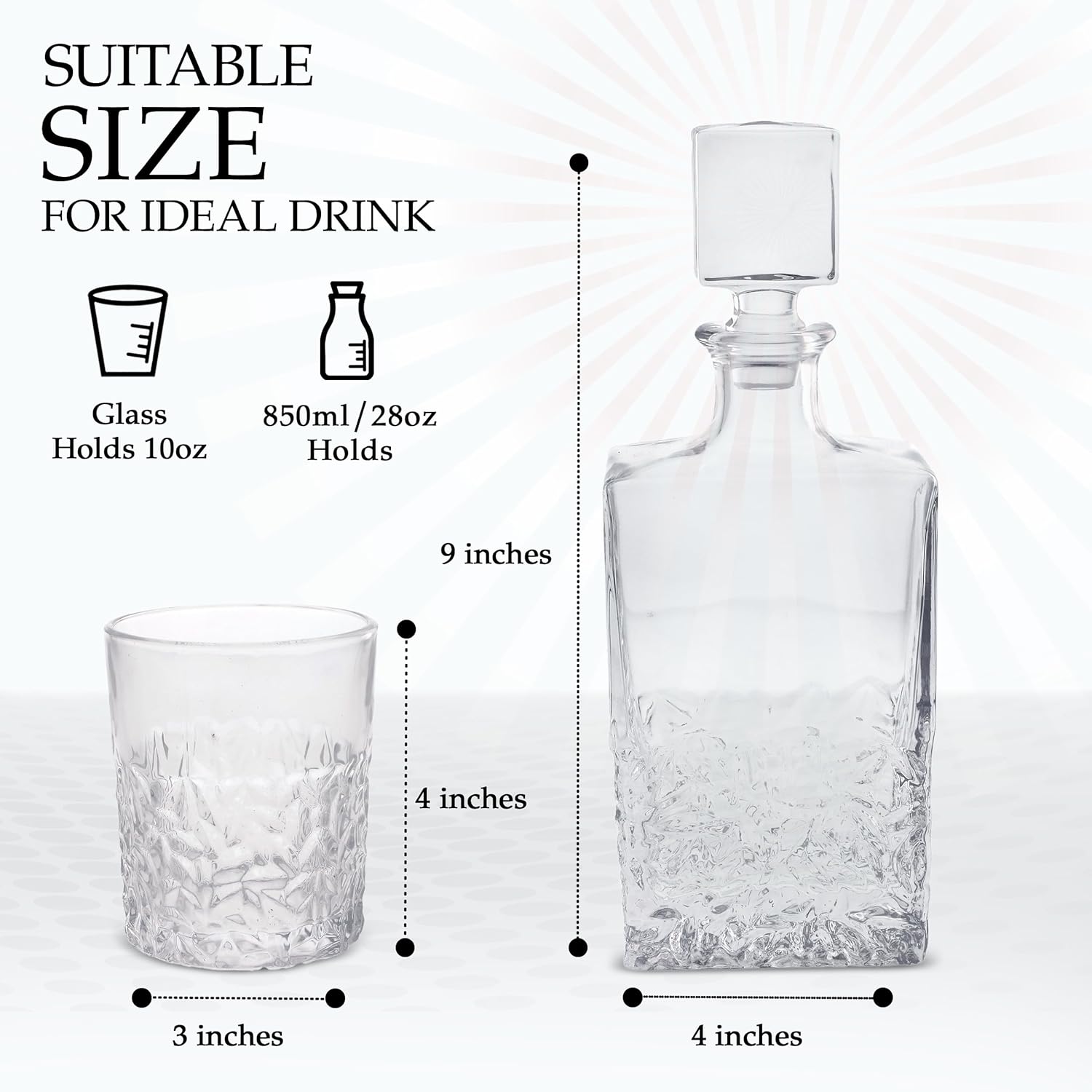 This Custom designed Whiskey Decanter Set Makes a Great Gift To Any Father Dad Brother Uncle Grandfather Husband Boyfriend or Any Man IN Your Life This Decanter Set Comes With The Decanter 2 10oz Whiskey Glasses 6 Chiller Cubes and tongs With Airtight Stopper All In a Nice Gift Box Great Gift Idea