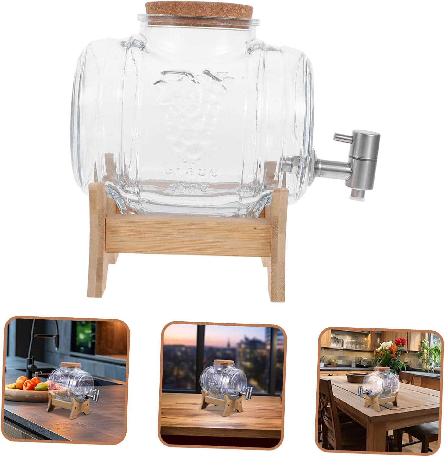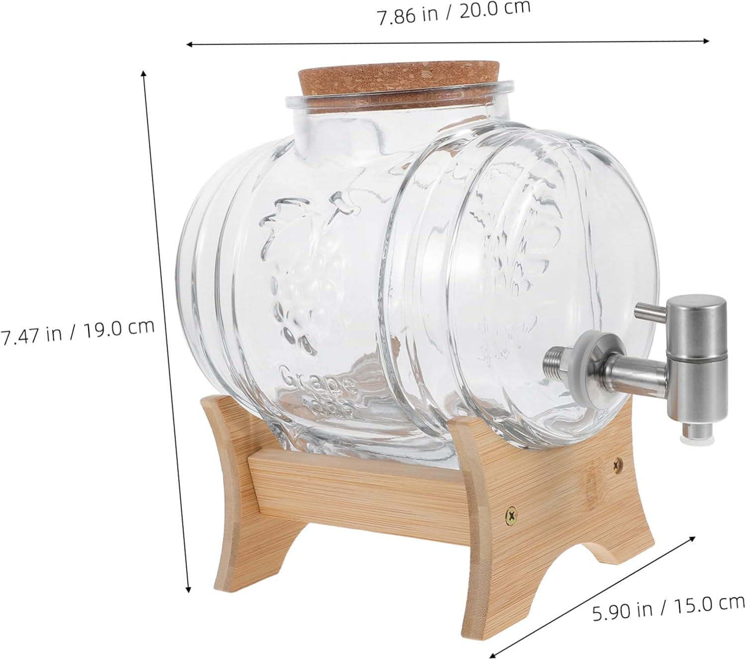 Package List 1 x Glass Beverage Dispenser with Wine Bottle and Stand Features -Large capacity: this 101oz glass barrel for storing large quantities of beverages, making it ideal for parties and gatherings beverage dispenser with stand -Versatile use: suitable for wine making, this barrel can also be used to store other beverages or even food items barrel drink dispenser -Vintage style: the retro design of the glass barrel adds a touch of elegance to your drink presentation sangria dispenser -Size:20.00X19.00X15.00cm/7.86X7.47X5.89in water dispenser countertop -Material: made from glass, this barrel is , easy to clean, and built to last lemonade dispenser -Material:Glass, , juice dispenser -Excellent sealing: the lid design a tight seal, preserving the freshness and flavor of your wine or other beverages glass beverage dispenser -Color:Transparent punch dispenser for partiesGoods Informationlemonade dispenser This vintage glass barrel for making and storing homemade beverages.water dispenser countertop Ideal for wine, whiskey, or juice, this glass barrel adds a touch of elegance to any kitchen or bar setup, making it a must-have for beverage enthusiasts.glass beverage dispenser With its classic design and secure lid, it your drinks stay fresh and flavorful