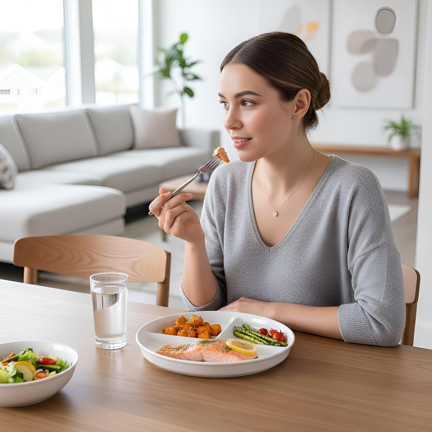 Features: Achieve a balanced lifestyle with our set of 8 ceramic portion control plates. Each white plate measures 8 inches, offering a durable solution for bariatric dining. Designed with 3 sections, these divided plates guide you to perfect portions every time, whether at home or on the go. Ideal for meal prep, picnics, or camping, our sectioned plates ensure you enjoy a healthy, balanced diet. Easy to clean, they're microwave and dishwasher safe. Start your journey to better eating habits now! Specifications: Material: ceramic Color: white Size: about 8 inches Package includes: 8 x Portion control plates Notes: Manual measurement, please allow slight errors on size. The color may exist a slight difference due to different screen displays