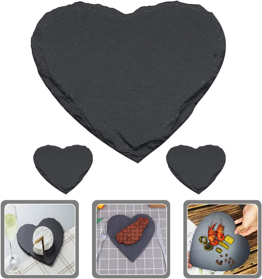 Package Include 3 x Trays Features -Note:Can not be placed in microwave ovens, ovens, can not be cleaned and scratched with steel balls heart shaped serving tray. -Size:15.00X15.00X0.50cm/5.89X5.89X0.20in -Material: -Product Info:Heart-shaped dining plate -Color:Black -Wide applications, perfect for home, hotel, restaurant, western restaurant and etc heart-shaped plate. -The food serving dish features fine workmanship, delicate details, chic and rustic style, practical and creative heart plates. -The dessert serving plate is multi-purpose, which can store pizza, steak, desserts, breakfast, side dishes and other foods you need heart shaped platter tray. -A and chic food serving plate will make your foods delicious and appetizing, also a home adornment heart shape dish. -Manufactured with premium and natural material, and practical enough to use.Goods Descriptionserving platter Creative and delicate, perfect as a steak serving plate.plates for steak Features the chic design, enjoys the practicality and durability.plates for cheese This western food steak plate is made of .heart shaped dish It can be widely used for party, events, home dinner, restaurant, etc