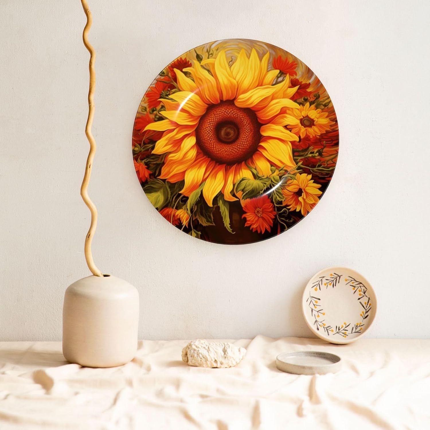 gokays decorative platedo you feel that your table is monotonous? Then use our decorative plate to add a little fun to the monotony of life.featuressize - 6 inch diameter;7 inch diameter;8 inch diameter;10 inch diametermaterial - ceramic design - Sunflower Oil Painting package - 1 x ceramic decorative plate, 1 x stand, 1 x pothookwhy choose gokays decorative plates?advantageas manufacturers we follow current trends and bring you the latest home fashion. Salad plates ideal for placement at home or in the office. Traditional porcelain making technology, fine workmanship. Ceramic dinner plates is a good gift for family and friends.convenient to useour dinner plates rack for display has 2 ways to use, you can just place the bracket base on a flat surface first, and then put the plate on it, also you can stick the provided pothook at the back of the plate, and then stick the plate on the wall, you can choose the suitable installation method according to the actual situation.occasionour ceramic ornaments salad plates is a perfect decorative and collection for any niche, table, or mantle at your home. Perfect for your office, home, living room, dining room, playroom, kitchen, cafe, study, studio, club, bar, and others.in a surprise for your family and friends!porcelain dessert plates is a perfect gift for any person in your life. You can give it directly to your lover as mother's day gift/father's day gift/birthday gift/christmas gift/valentines day gift/anniversary gift/wedding gift/housewarming gift/new home gift.start with our funny decorative plate, refresh your rooms!