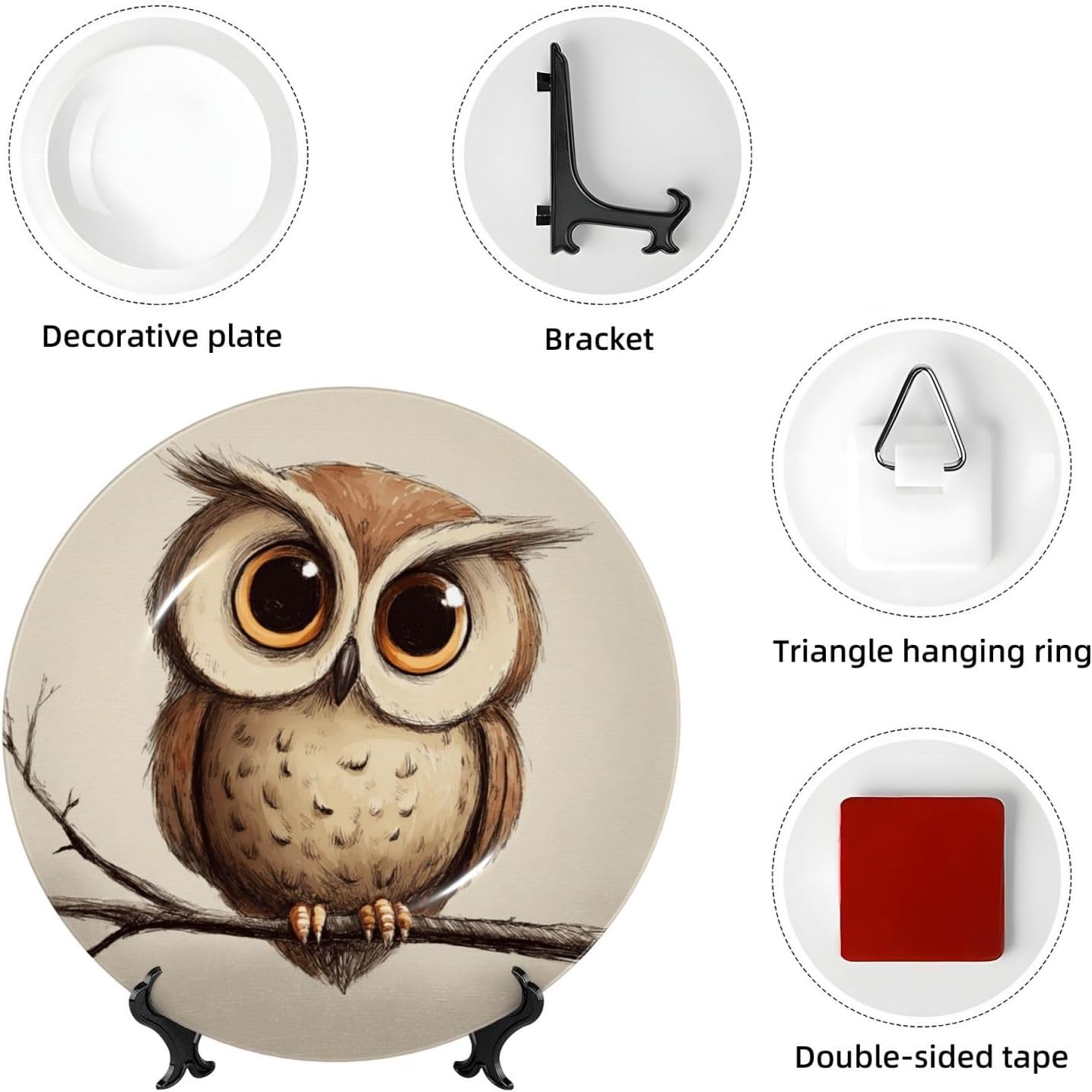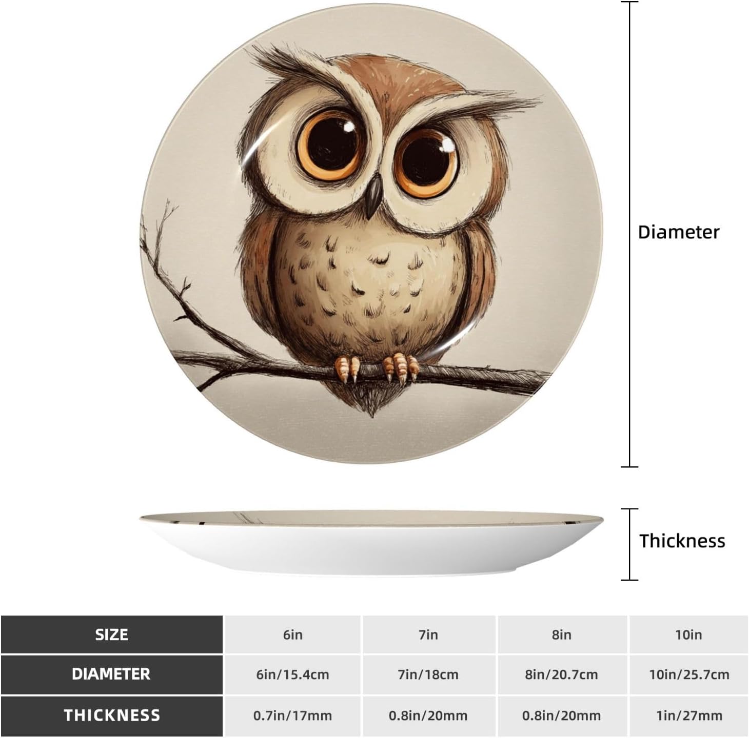 gokays decorative platedo you feel that your table is monotonous? Then use our decorative plate to add a little fun to the monotony of life.featuressize - 6 inch diameter;7 inch diameter;8 inch diameter;10 inch diametermaterial - ceramic design - Cute Owl package - 1 x ceramic decorative plate, 1 x stand, 1 x pothookwhy choose gokays decorative plates?advantageas manufacturers we follow current trends and bring you the latest home fashion. Salad plates ideal for placement at home or in the office. Traditional porcelain making technology, fine workmanship. Ceramic dinner plates is a good gift for family and friends.convenient to useour dinner plates rack for display has 2 ways to use, you can just place the bracket base on a flat surface first, and then put the plate on it, also you can stick the provided pothook at the back of the plate, and then stick the plate on the wall, you can choose the suitable installation method according to the actual situation.occasionour ceramic ornaments salad plates is a perfect decorative and collection for any niche, table, or mantle at your home. Perfect for your office, home, living room, dining room, playroom, kitchen, cafe, study, studio, club, bar, and others.in a surprise for your family and friends!porcelain dessert plates is a perfect gift for any person in your life. You can give it directly to your lover as mother's day gift/father's day gift/birthday gift/christmas gift/valentines day gift/anniversary gift/wedding gift/housewarming gift/new home gift.start with our funny decorative plate, refresh your rooms!