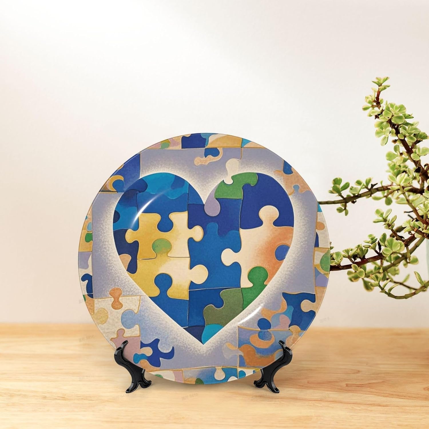 gokays decorative platedo you feel that your table is monotonous? Then use our decorative plate to add a little fun to the monotony of life.featuressize - 6 inch diameter;7 inch diameter;8 inch diameter;10 inch diametermaterial - ceramic design - Autism Awareness Puzzle Pieces Heart package - 1 x ceramic decorative plate, 1 x stand, 1 x pothookwhy choose gokays decorative plates?advantageas manufacturers we follow current trends and bring you the latest home fashion. Salad plates ideal for placement at home or in the office. Traditional porcelain making technology, fine workmanship. Ceramic dinner plates is a good gift for family and friends.convenient to useour dinner plates rack for display has 2 ways to use, you can just place the bracket base on a flat surface first, and then put the plate on it, also you can stick the provided pothook at the back of the plate, and then stick the plate on the wall, you can choose the suitable installation method according to the actual situation.occasionour ceramic ornaments salad plates is a perfect decorative and collection for any niche, table, or mantle at your home. Perfect for your office, home, living room, dining room, playroom, kitchen, cafe, study, studio, club, bar, and others.in a surprise for your family and friends!porcelain dessert plates is a perfect gift for any person in your life. You can give it directly to your lover as mother's day gift/father's day gift/birthday gift/christmas gift/valentines day gift/anniversary gift/wedding gift/housewarming gift/new home gift.start with our funny decorative plate, refresh your rooms!