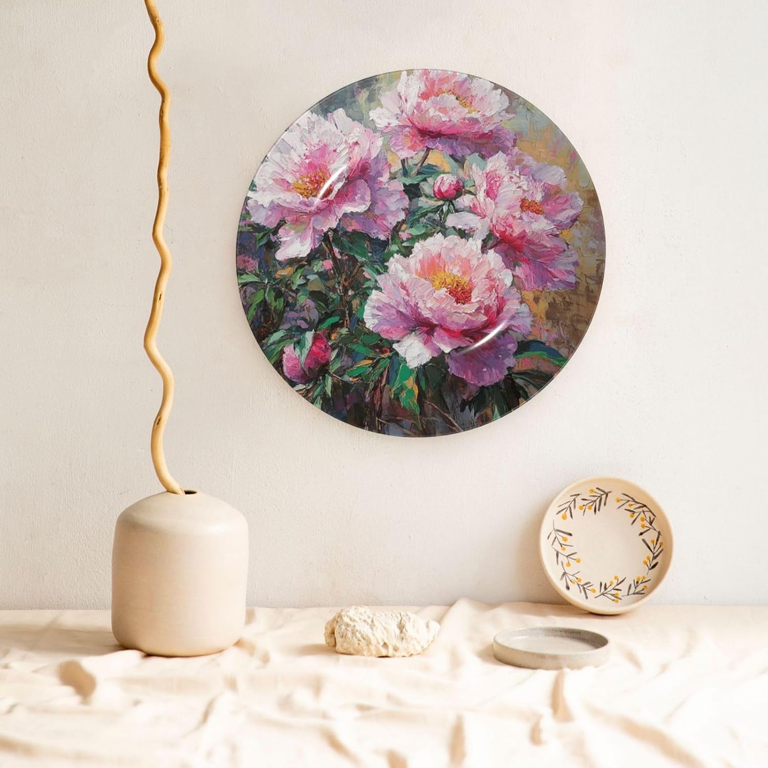 PORCELAIN PLATE DECORATION: peony flowers blossom Crafts decorative plate painting decorative plates are worth sharing with your friends and family, showing your personality. Start with these fun and ceramic ornaments salad plates, refresh your roomsDIVERSITY OF USE: Porcelain dessert plates has a variety of placement methods, whether it is placed on the table with a base or hung on the wall, ceramic decorative plate is a very beautiful decoration. Dishes with display stand sturdy, versatile, and stylish, and everyone can use it safely, it is both beautiful and easy to cleanNO RISK: Crafts Decorative Plate is sturdy, versatile, and stylish, and everyone can use it safely. We will provides premium service to help solve any problem.Please feel free to contact us if you have any quality or transportation problems.