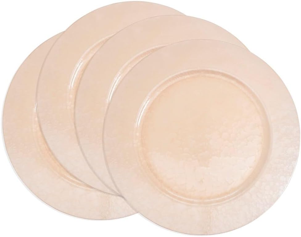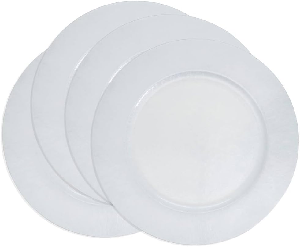 Upgrade your dining presentation with this stunning Set of 4 Faux Mother of Pearl Charger Plates. Measuring 13 inches in diameter, each plate features a luxurious mother-of-pearl-inspired finish that brings elegance and sophistication to your table setting. Perfect for weddings, dinner parties, holiday celebrations, and upscale events, these chargers act as the ideal backdrop for your dinnerware.
