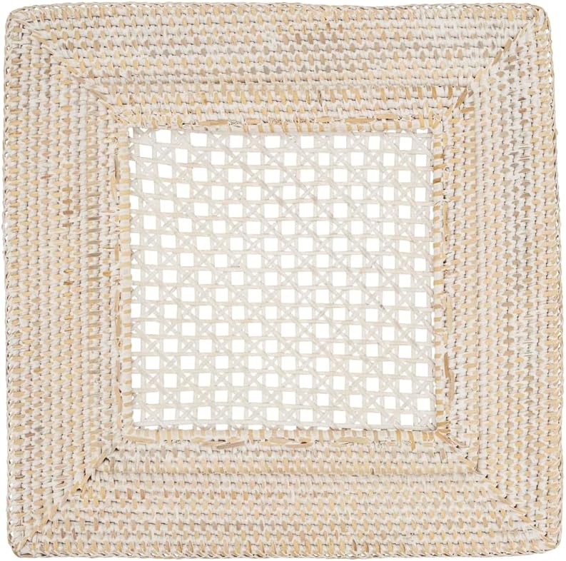 Add texture and style to your dinner table with this Rustic Rattan Charger. This natural decorative charger features a simple woven design, creating a farmhouse or modern rustic look that will easily blend with your existing decor. These square charger plates are the perfect choice to protect your dining table from a hot plate or saucy spill, or just add a decorative touch beneath your dinnerware.