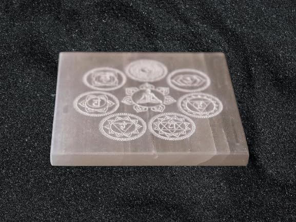 Material: Natural Selenite | Size: 3 Inch Approx | Weight: 140 Grams Approx | Quantity: 1 Pc | Enhance your spiritual practice with this Natural Selenite Charging Plate featuring Seven Chakra Symbols & Meditative State Engravement. Perfect for cleansing and recharging your crystals, promoting balance, and amplifying positive energy.