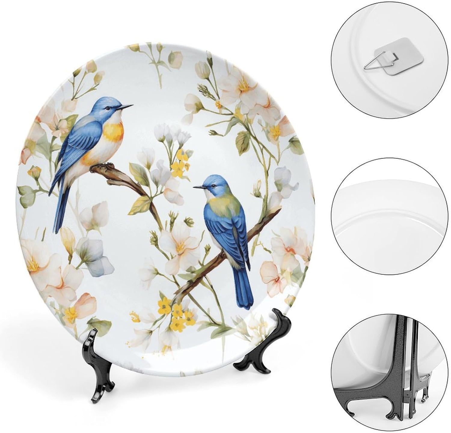 Our versatile ceramic Watercolor Flowers And Birds plates are made of smooth ceramic material. The lightweight bone china plates can be easily placed anywhere you like, showcasing their decorative charm.This bone china dessert plate is available in four sizes: 6 inches, 7 inches, 8 inches, and 10 inches, making it an ideal choice for display items.Personalized decorative plates, perfect for displaying handicrafts, are an ideal choice for home décor. This vertical ceramic plate makes a wonderful gift for housewarmings, anniversaries, weddings, birthdays, Thanksgiving, New Year's, or any holiday.This French country-style ceramic plate is suitable for decorating or using in living rooms, offices, hallways, dining rooms, entrances, hotels, holiday homes, and other places.